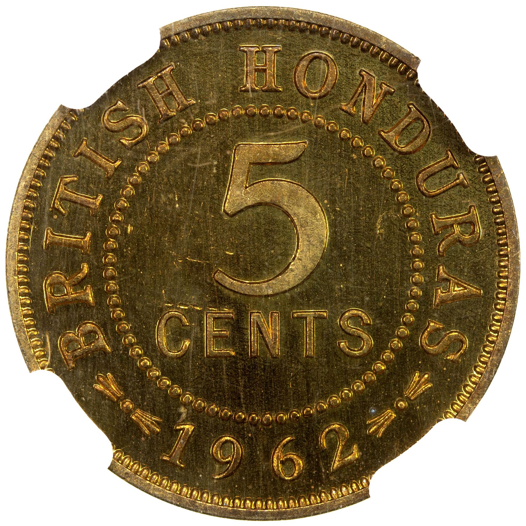 BRITISH HONDURAS: Elizabeth II, 1952-1973, 5 cents, 1962, NGC Proof 64