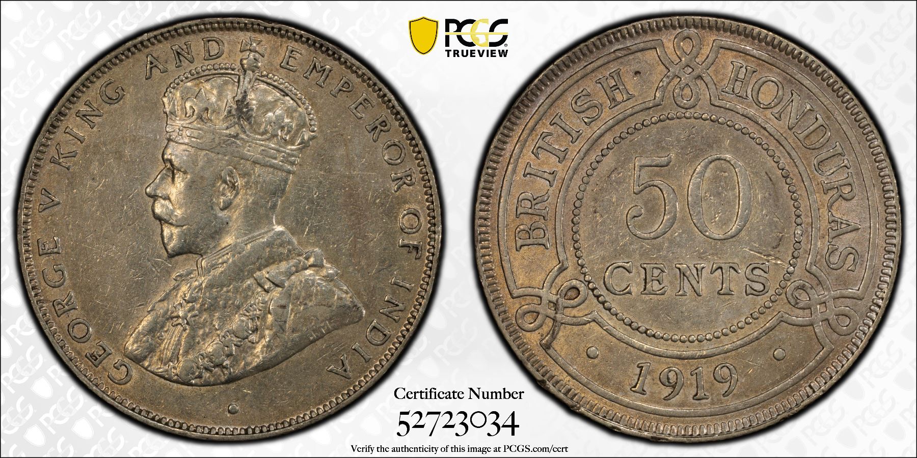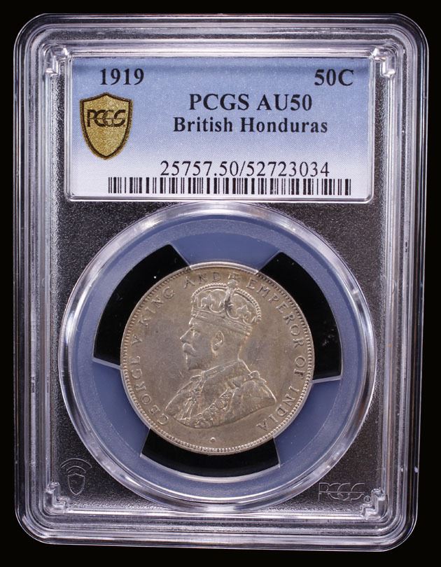 BRITISH HONDURAS: George V, 1910-1936, AR 50 cents, 1919, PCGS AU50