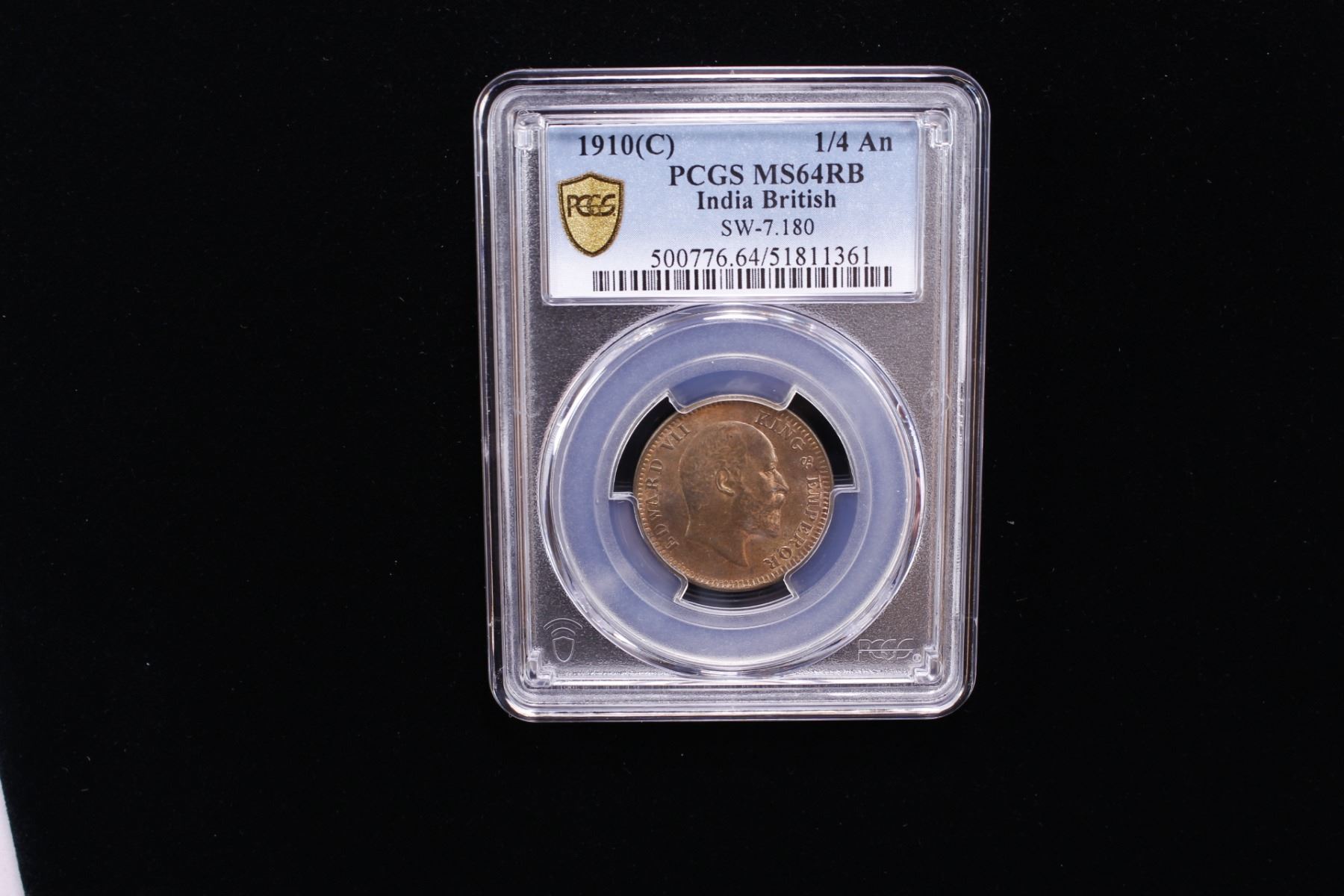 BRITISH INDIA: Edward VII, 1901-1910, AE 1/4 anna, 1910(c), KM-502, S&W-7.180, a wonderful example, PCGS graded MS64 RB.