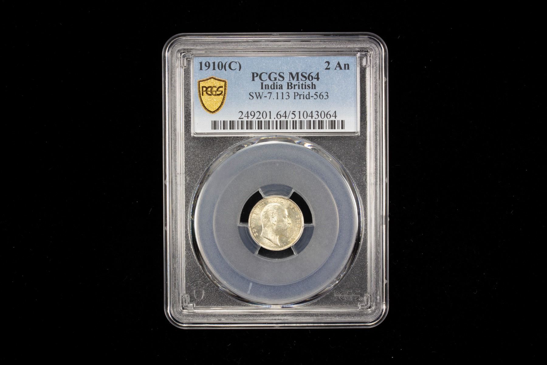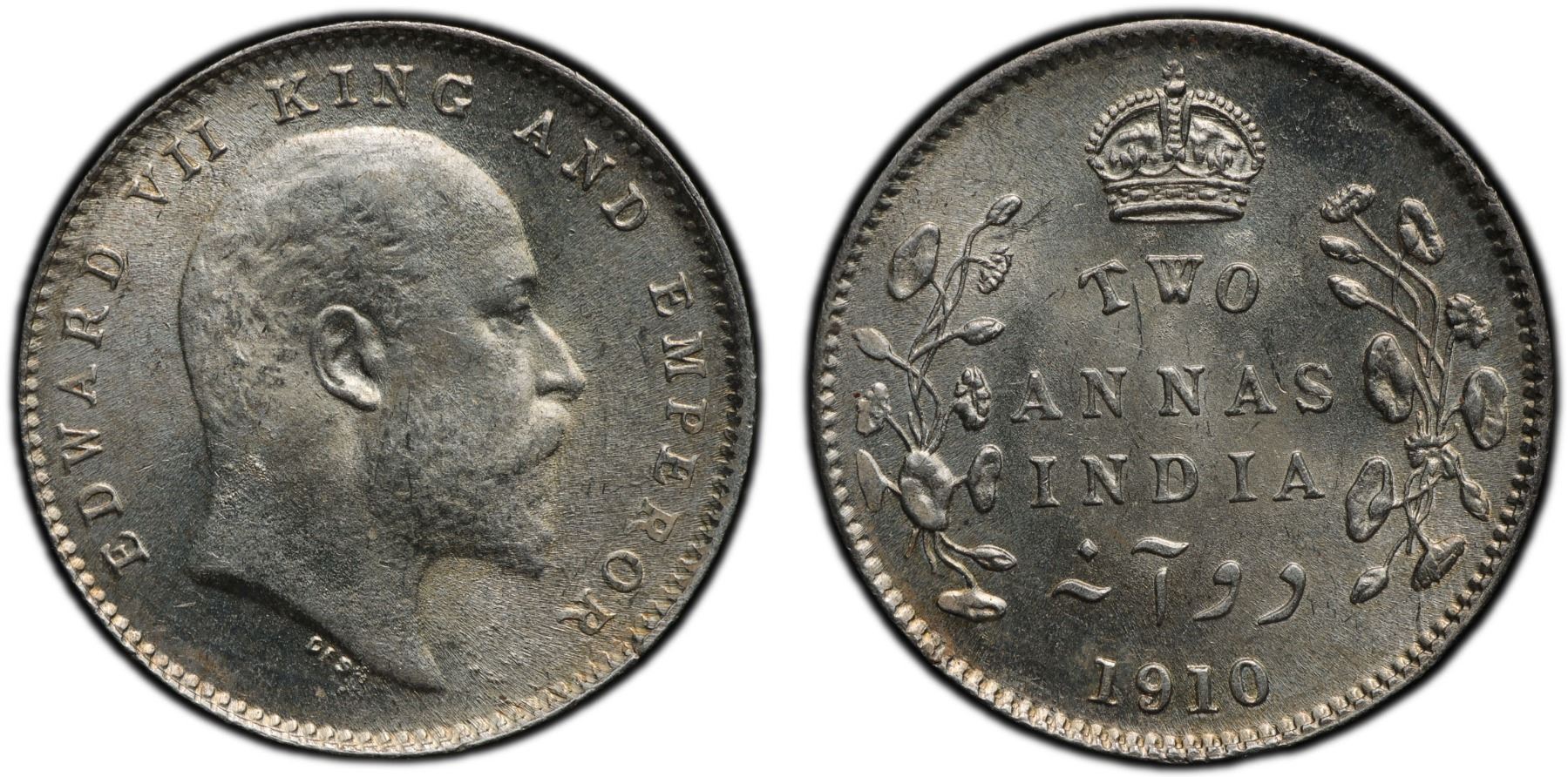 BRITISH INDIA: Edward VII, 1901-1910, AR 2 annas, 1910(c), KM-505, S&W-7.113, Prid-563, a wonderful lustrous example! PCGS graded MS64.