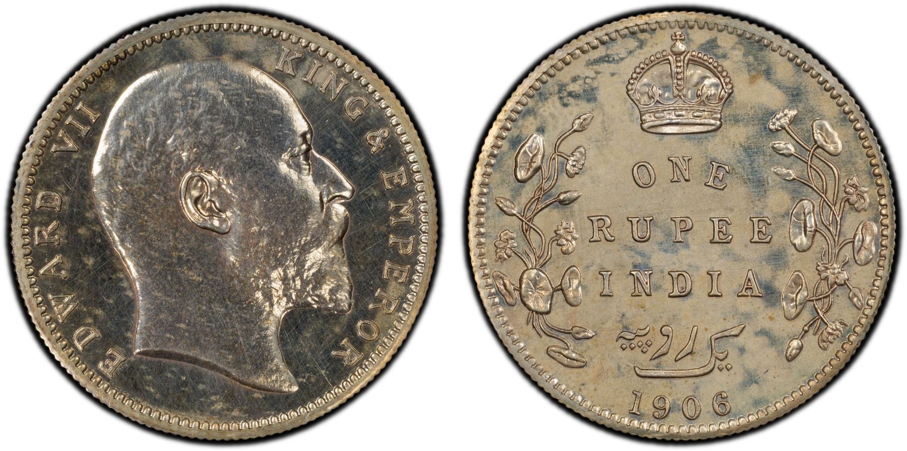 BRITISH INDIA: Edward VII, 1901-1910, AR rupee, 1906-B, PCGS Proof 63