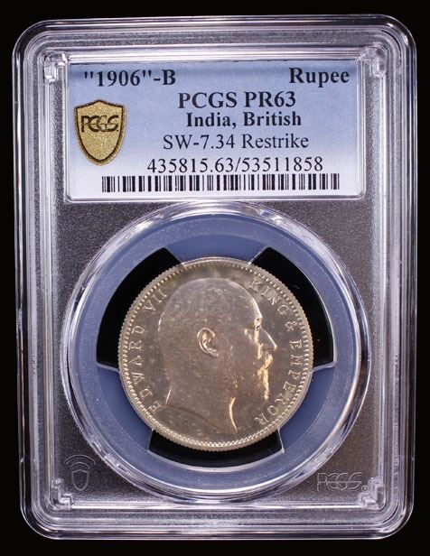BRITISH INDIA: Edward VII, 1901-1910, AR rupee, 1906-B, KM-508, S&W-7.34, Bombay mint proof restrike, a lovely lustrous example! PCGS graded Proof 63.
