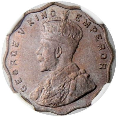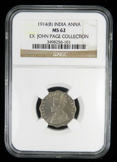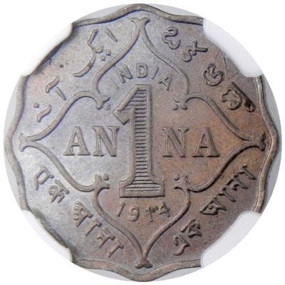 BRITISH INDIA: George V, 1910-1936, 1 anna, 1914(b), KM-513, Y-38, NGC graded MS62, ex. John Page Collection.