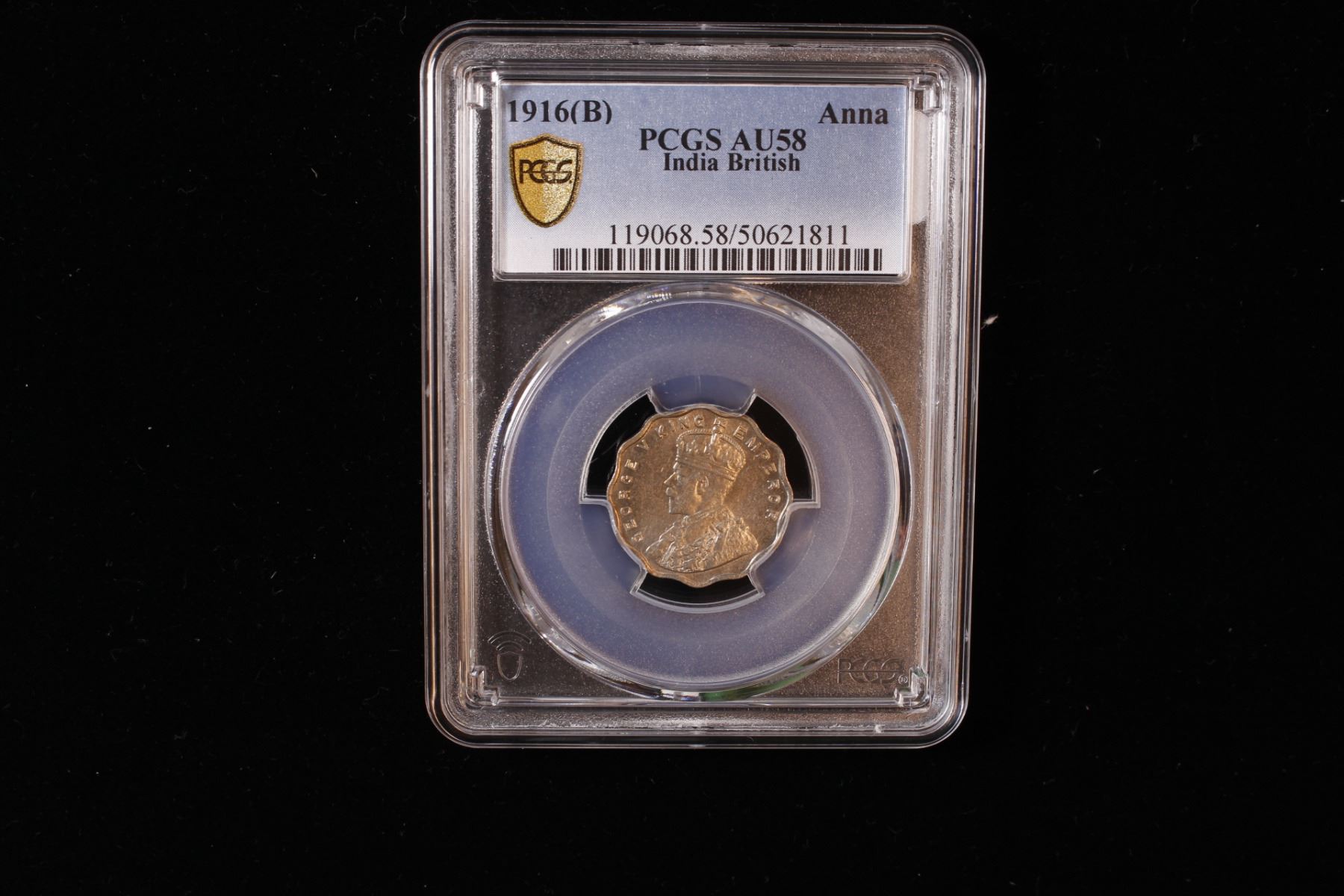 BRITISH INDIA: George V, 1910-1936, 1 anna, 1916(b), KM-513, S&W-8.277, an attractive nearly mint state example, PCGS graded AU58.