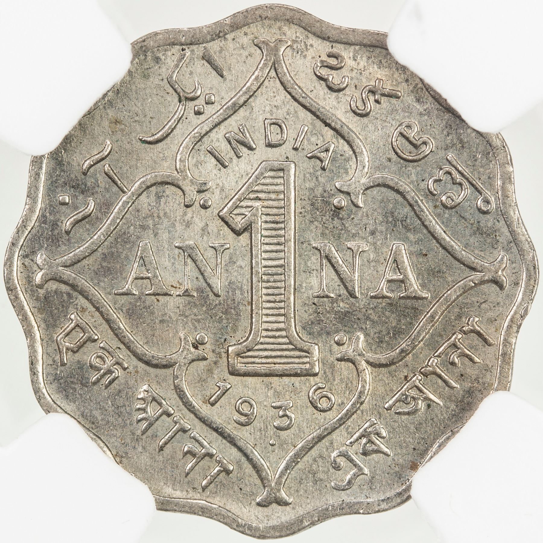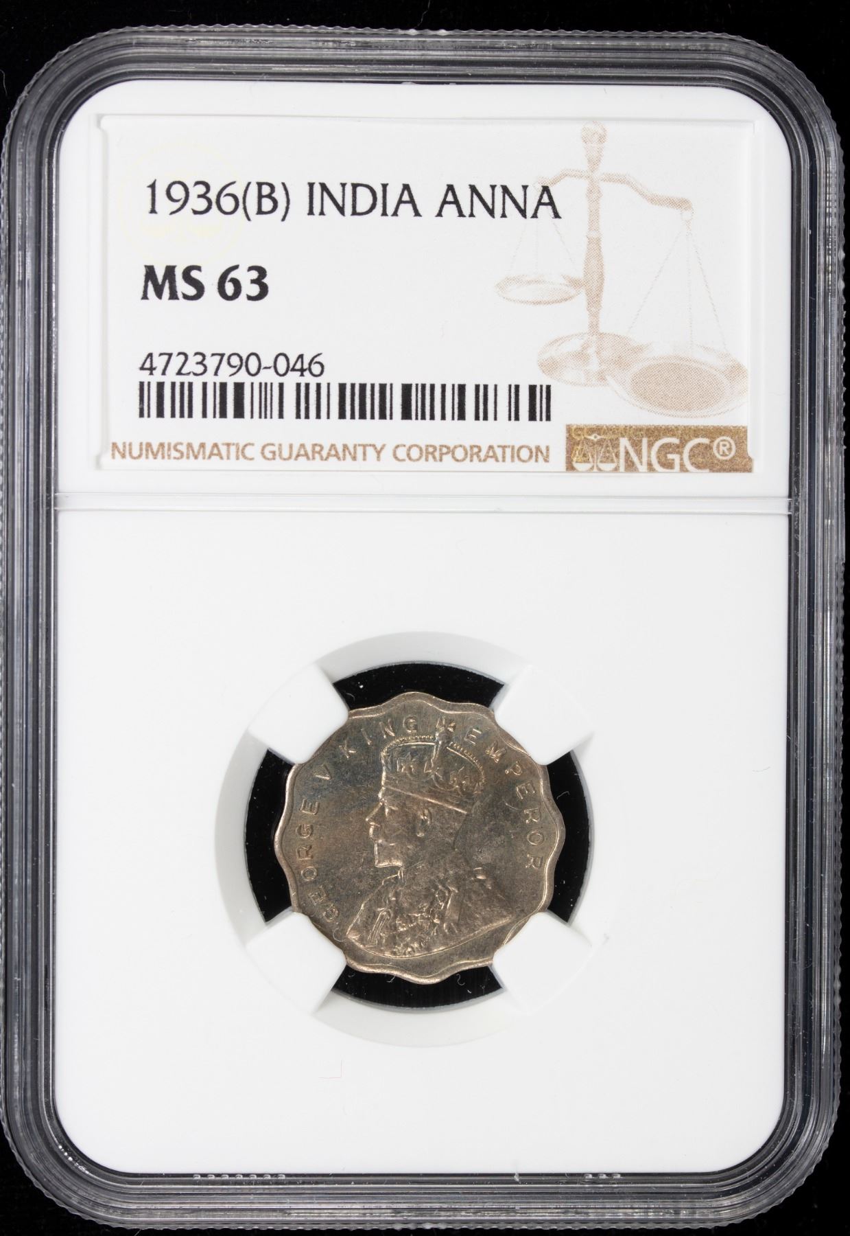 BRITISH INDIA: George V, 1910-1936, 1 anna, 1936(b), KM-513, NGC graded MS63.