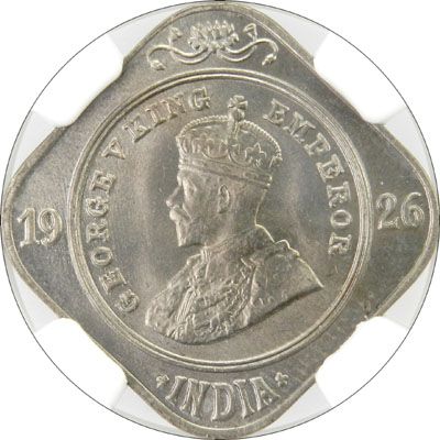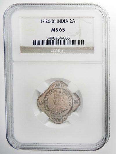 BRITISH INDIA: George V, 1910-1936, 2 annas, 1926(b), KM-516, NGC graded MS65.