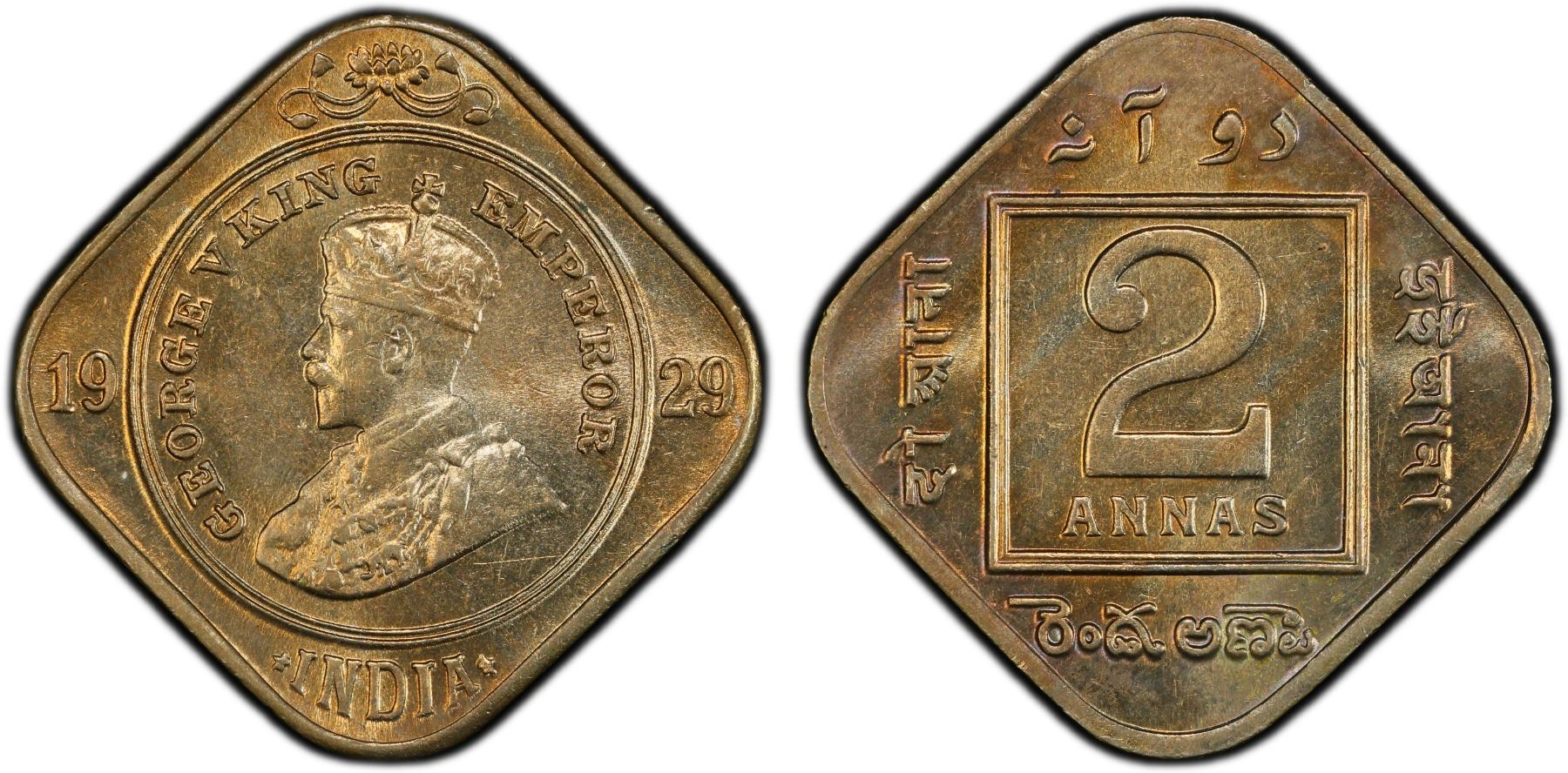 BRITISH INDIA: George V, 1910-1936, 2 annas, 1929(c), KM-516, S&W-8.256, a lovely lustrous example! PCGS graded MS63.