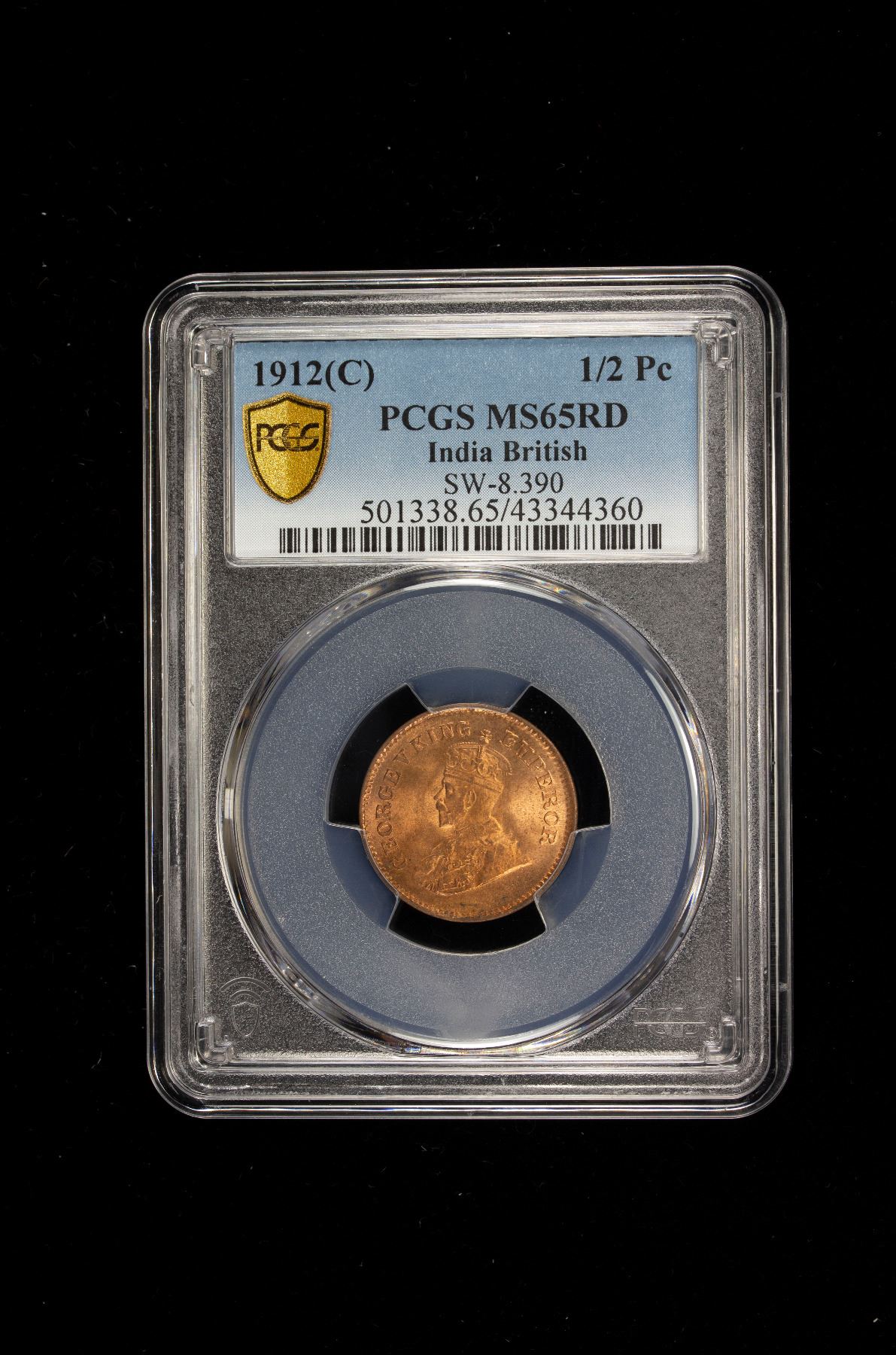 BRITISH INDIA: George V, 1910-1936, AE 1/2 pice, 1912(c), PCGS MS65 RD