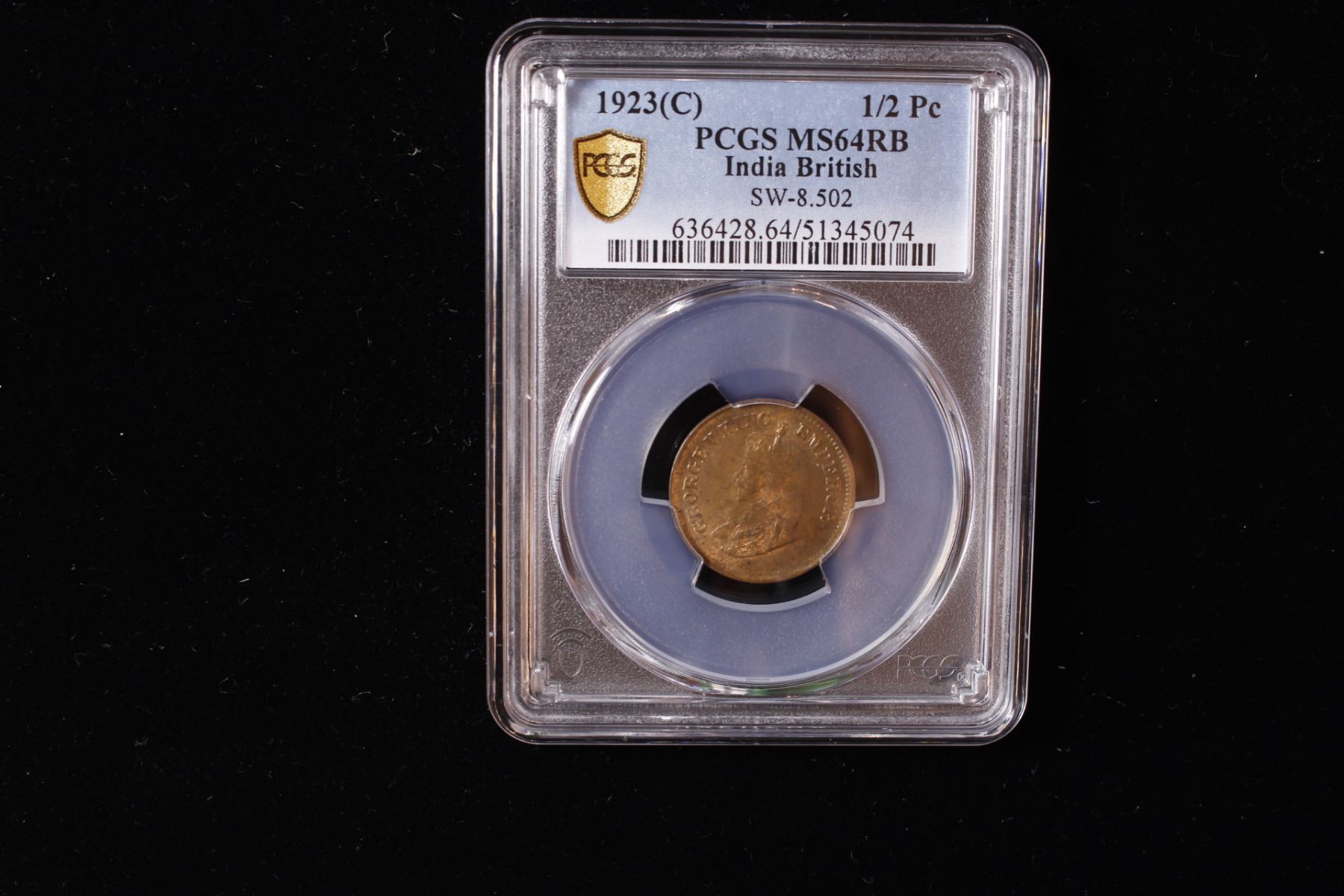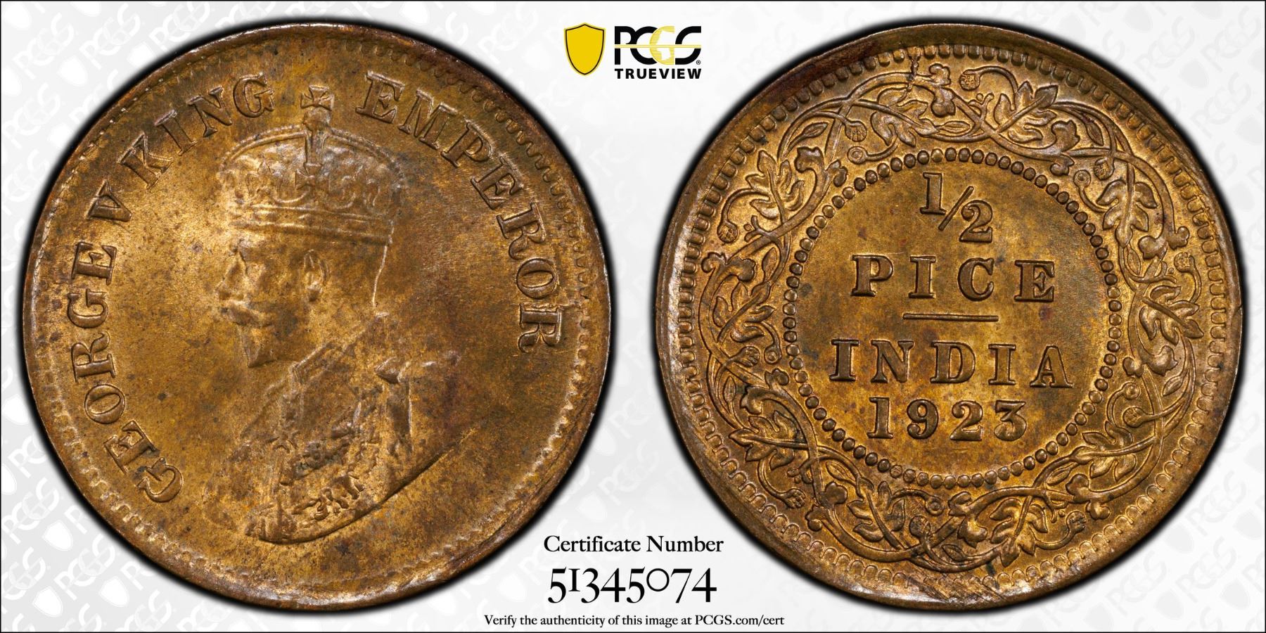 BRITISH INDIA: George V, 1910-1936, AE 1/2 pice, 1923(c), PCGS MS64 RB