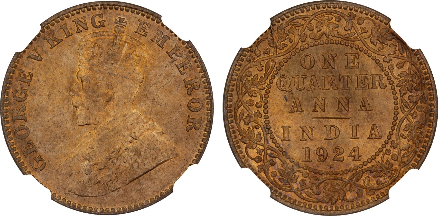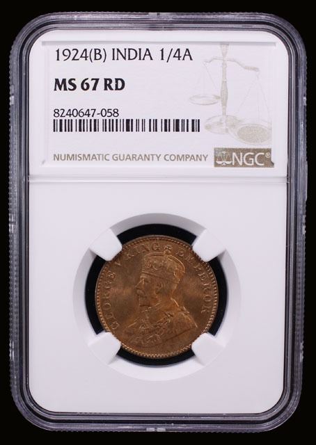 BRITISH INDIA: George V, 1910-1936, AE 1/4 anna, 1924(b), NGC MS67 RD