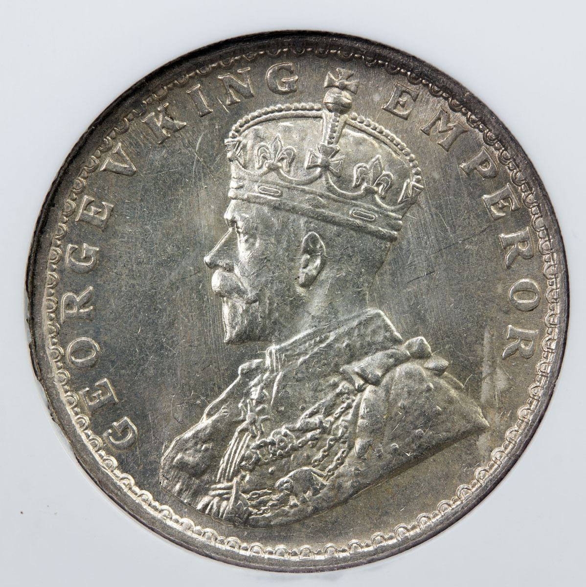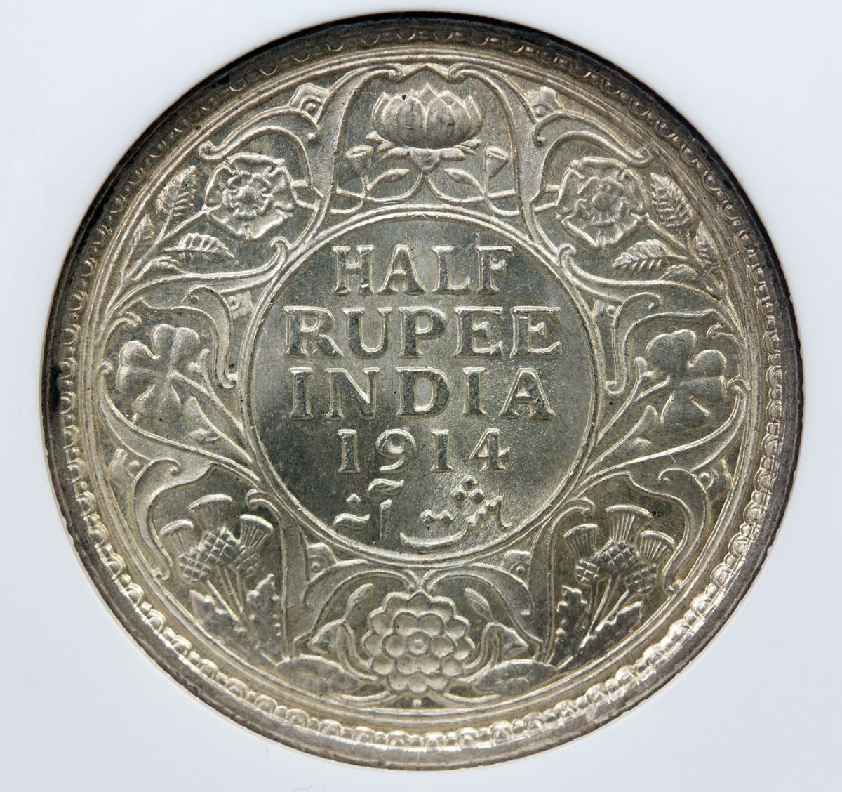 BRITISH INDIA: George V, 1910-1936, AR ½ rupee, 1914(b), KM-522, NGC graded MS64.