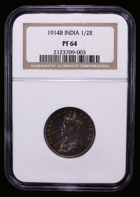 BRITISH INDIA: George V, 1910-1936, AR 1/2 rupee, 1914(b), NGC Proof 64