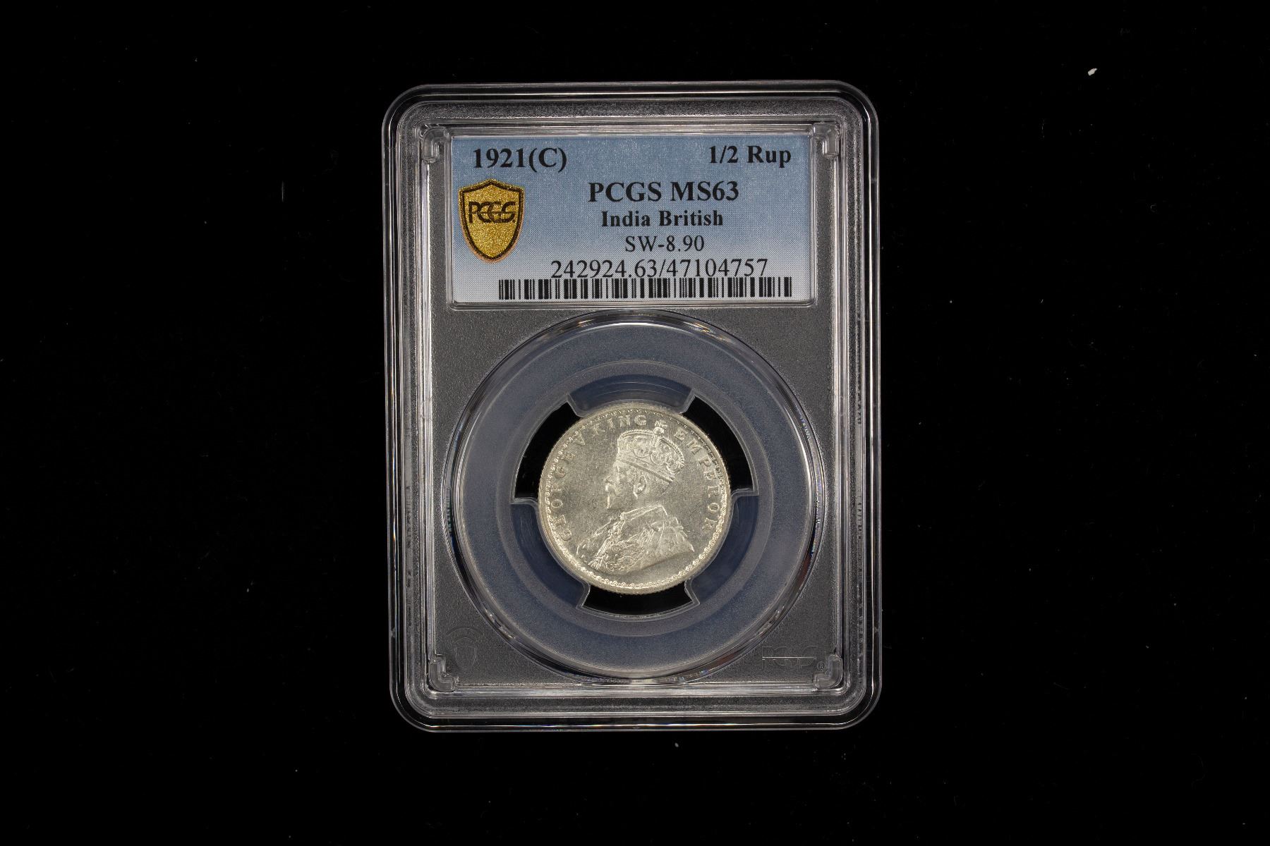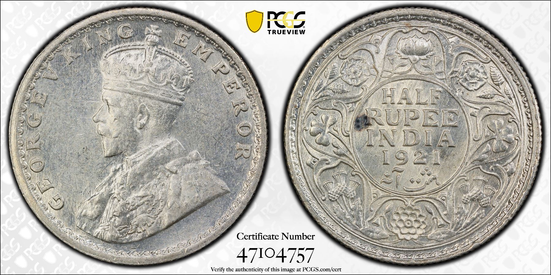 BRITISH INDIA: George V, 1910-1936, AR 1/2 rupee, 1921(c), PCGS MS63
