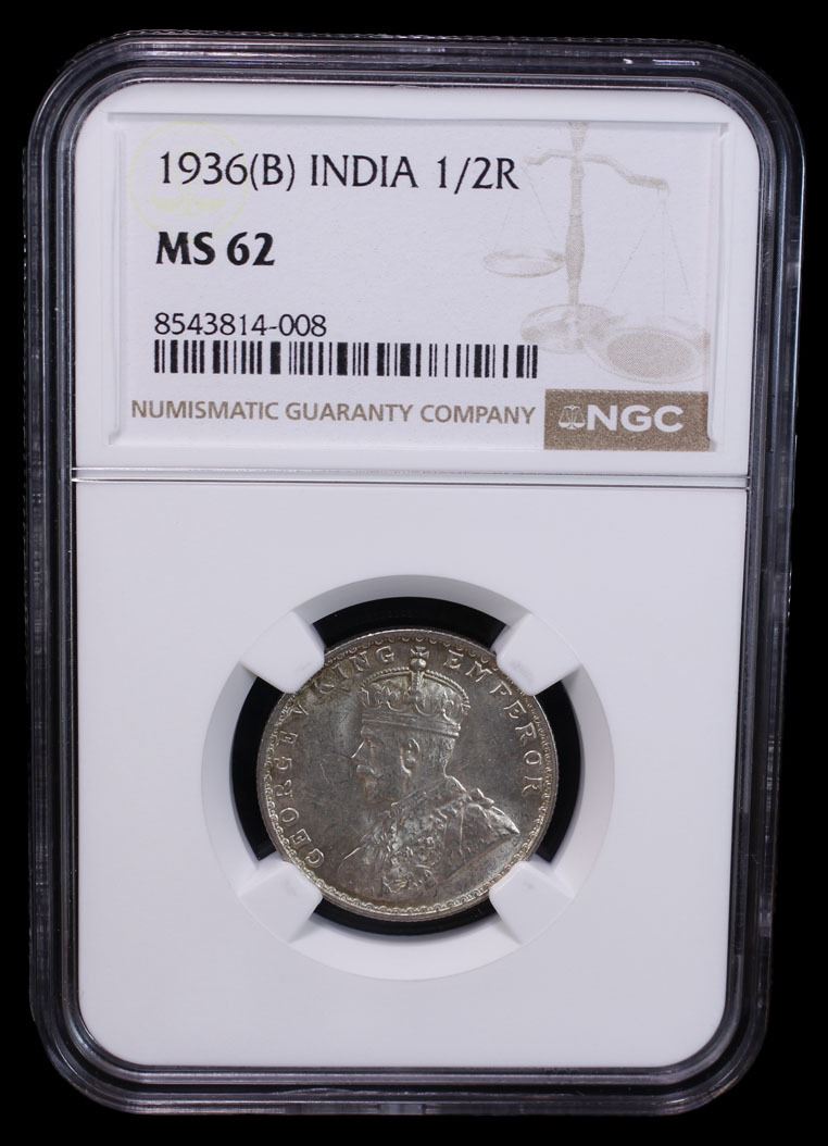 BRITISH INDIA: George V, 1910-1936, AR 1/2 rupee, 1936(b), NGC MS62