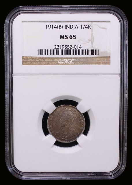 BRITISH INDIA: George V, 1910-1936, AR 1/4 rupee, 1914(b), NGC MS65