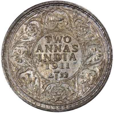 BRITISH INDIA: George V, 1910-1936, AR 2 annas, 1911(c), KM-514, S&W-8.194, "pig" type, lustrous Unc.