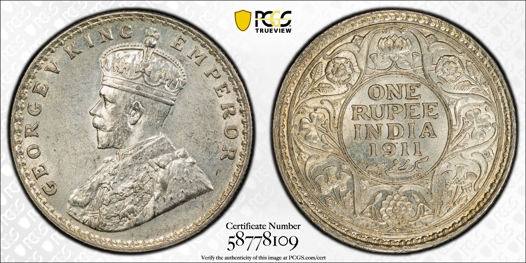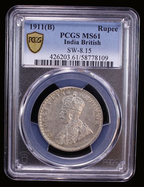 BRITISH INDIA: George V, 1910-1936, AR rupee, 1911(b), PCGS MS61