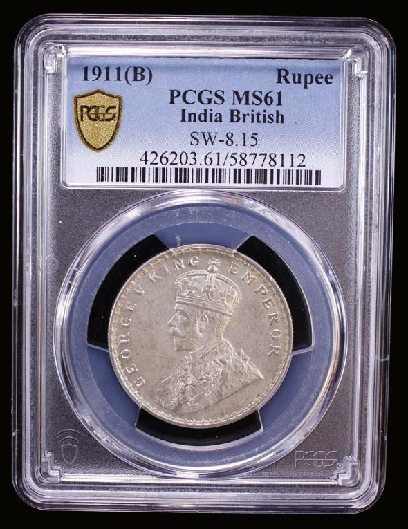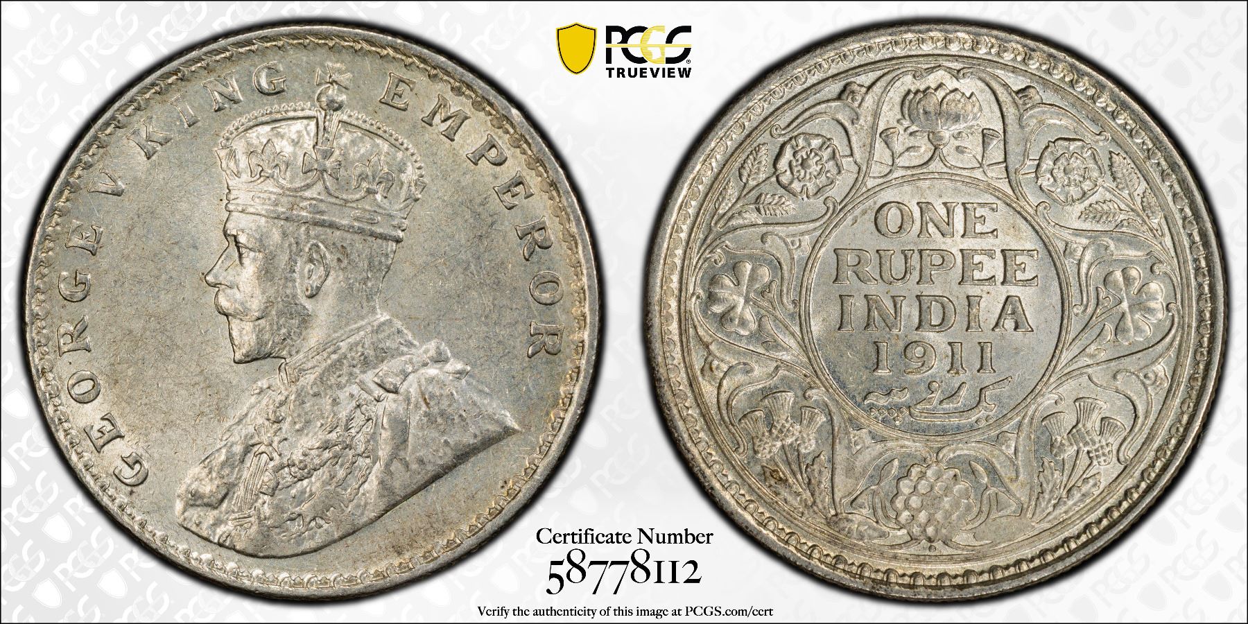BRITISH INDIA: George V, 1910-1936, AR rupee, 1911(b), PCGS MS61