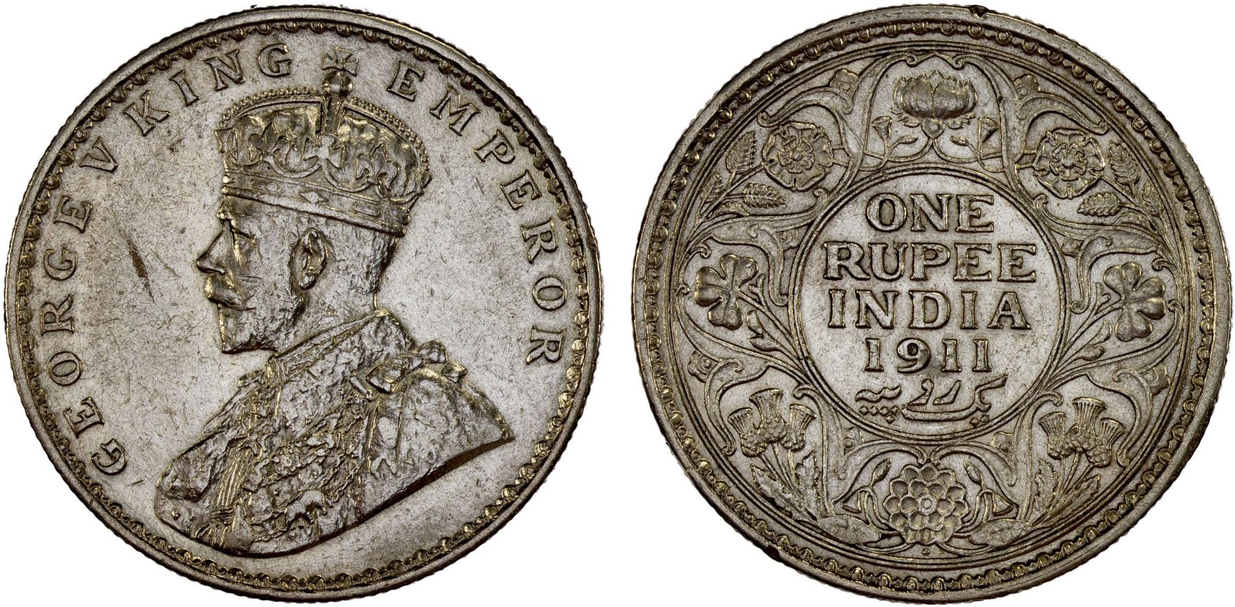 BRITISH INDIA: George V, 1910-1936, AR rupee, 1911(b), XF-AU