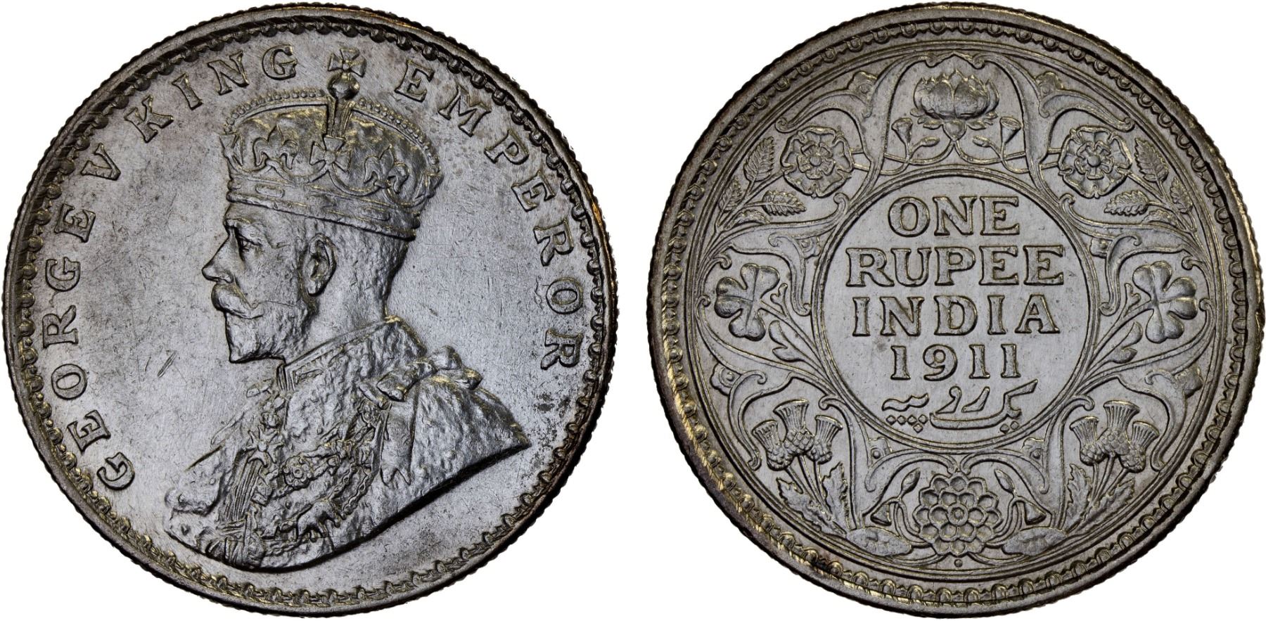 BRITISH INDIA: George V, 1910-1936, AR rupee, 1911(b), XF-AU