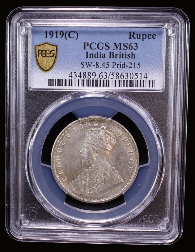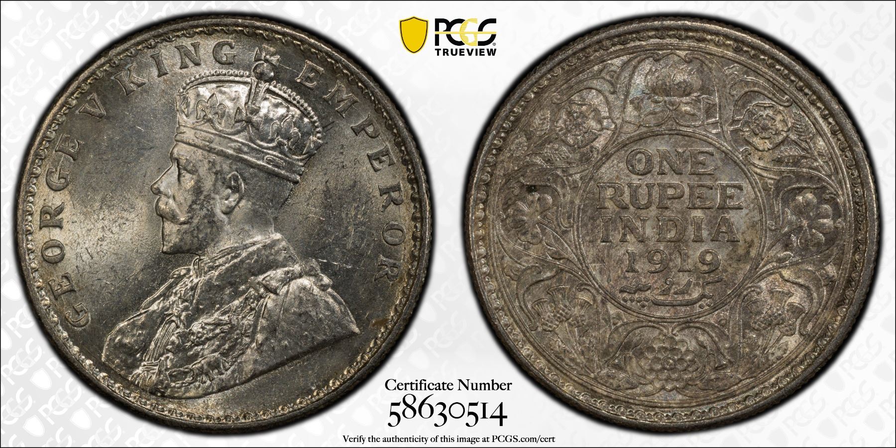 BRITISH INDIA: George V, 1910-1936, AR rupee, 1919(c), PCGS MS63