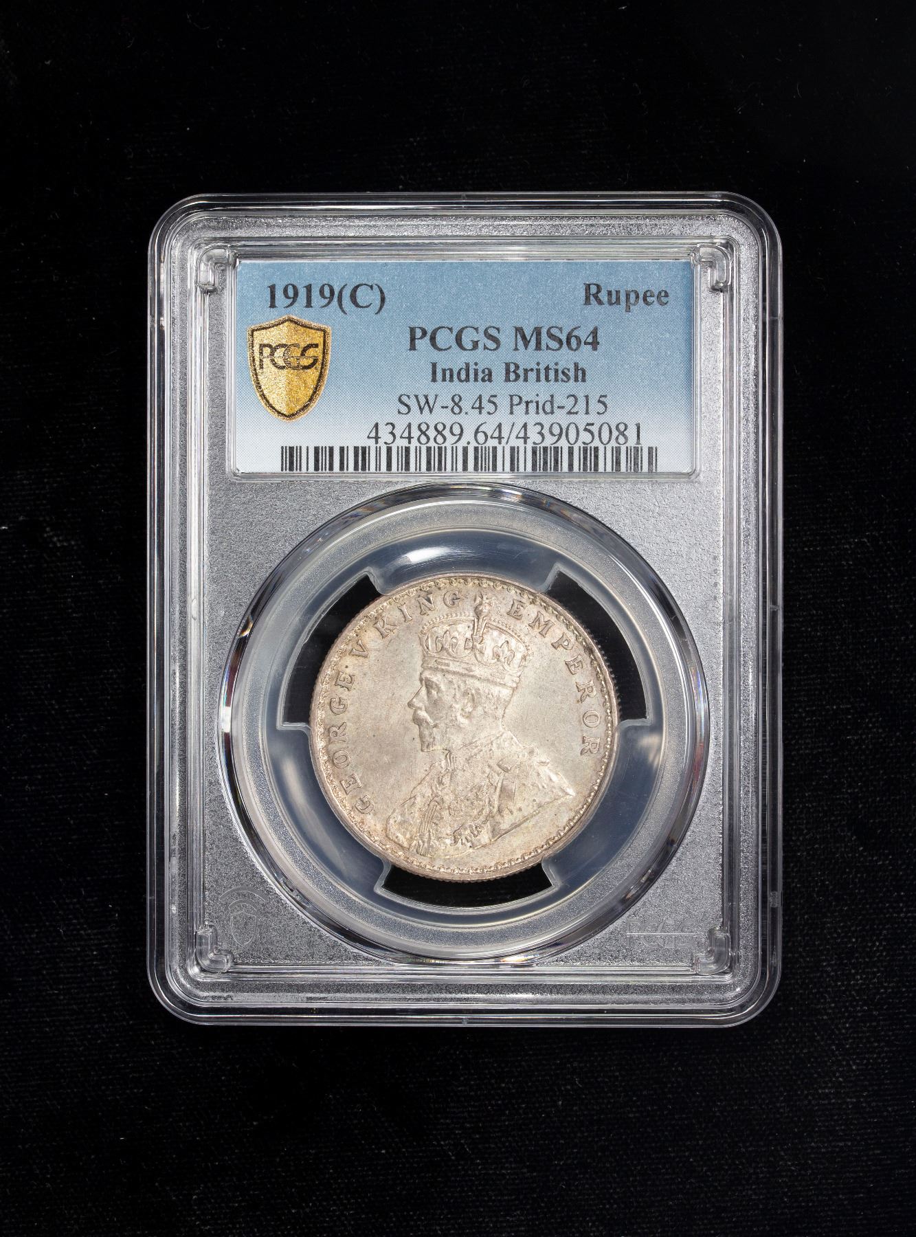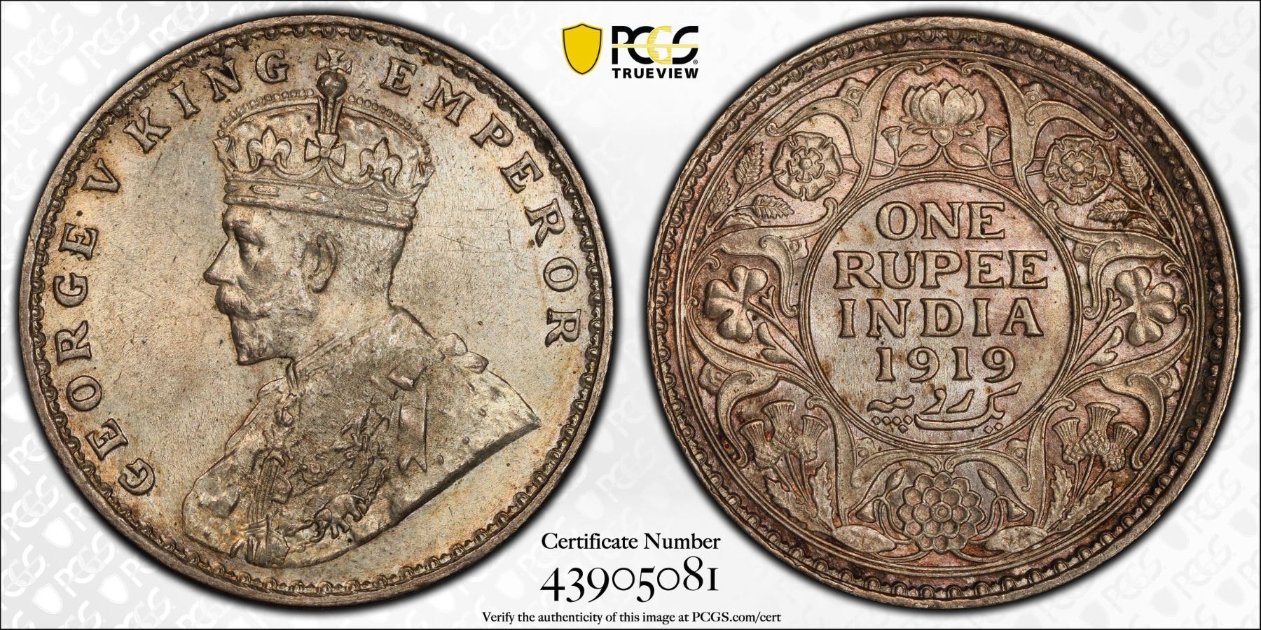 BRITISH INDIA: George V, 1910-1936, AR rupee, 1919(c), PCGS MS64