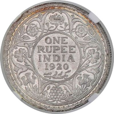 BRITISH INDIA: George V, 1910-1936, AR rupee, 1920(b), KM-524, NGC graded MS63.