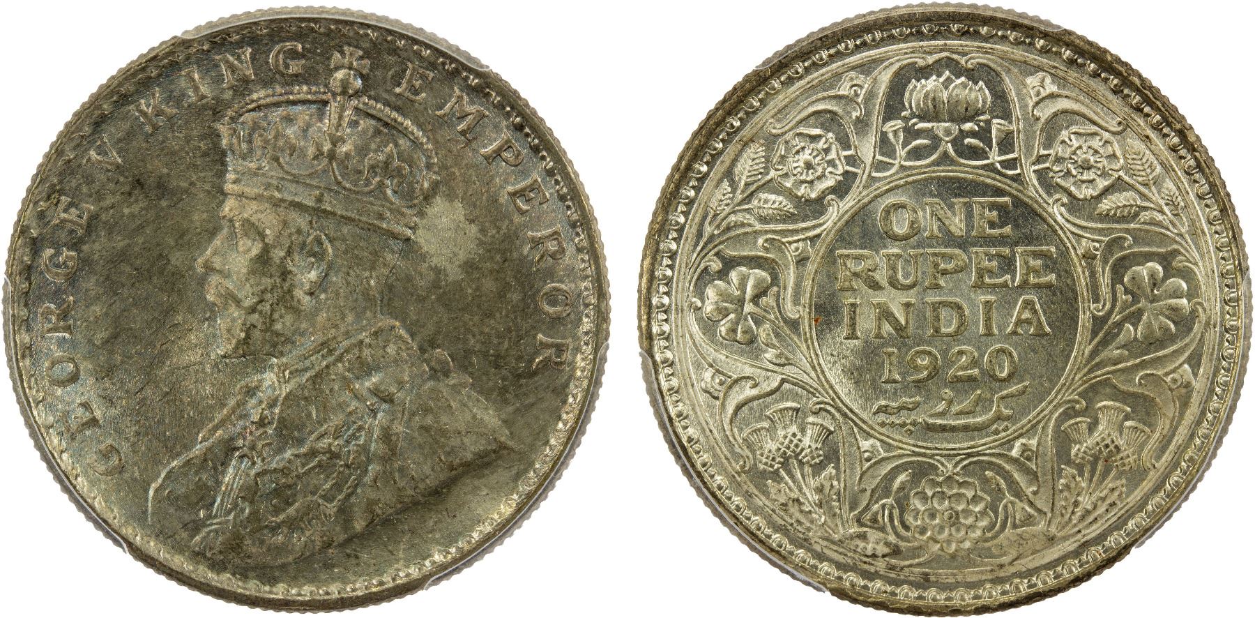 BRITISH INDIA: George V, 1910-1936, AR rupee, 1920(c), KM-524, S&W-8.50, a superb lustrous example with light attractive toning! PCGS graded MS65.