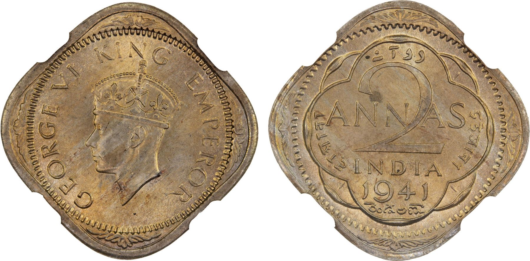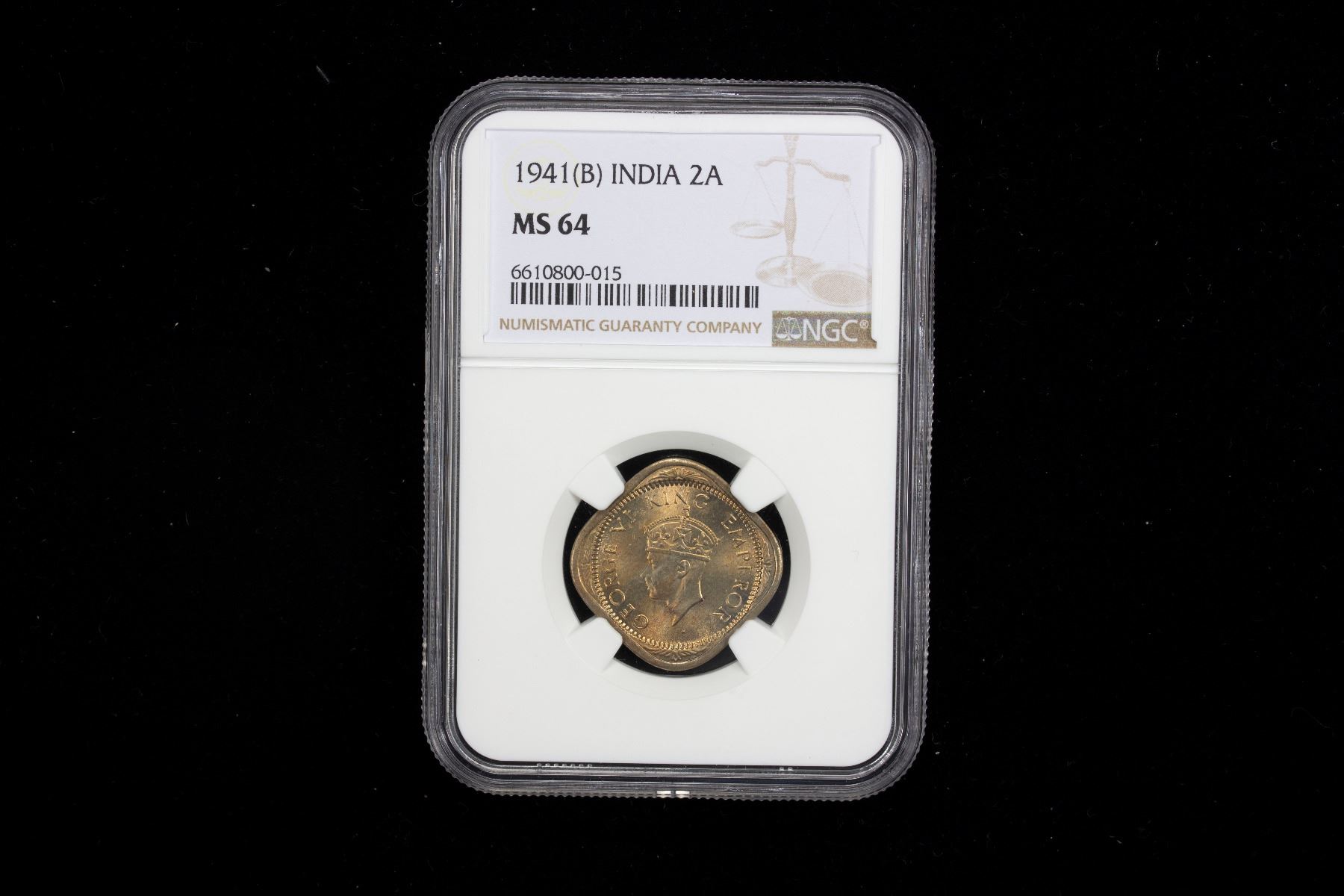 BRITISH INDIA: George VI, 1936-1947, 2 annas, 1941(b), NGC MS64