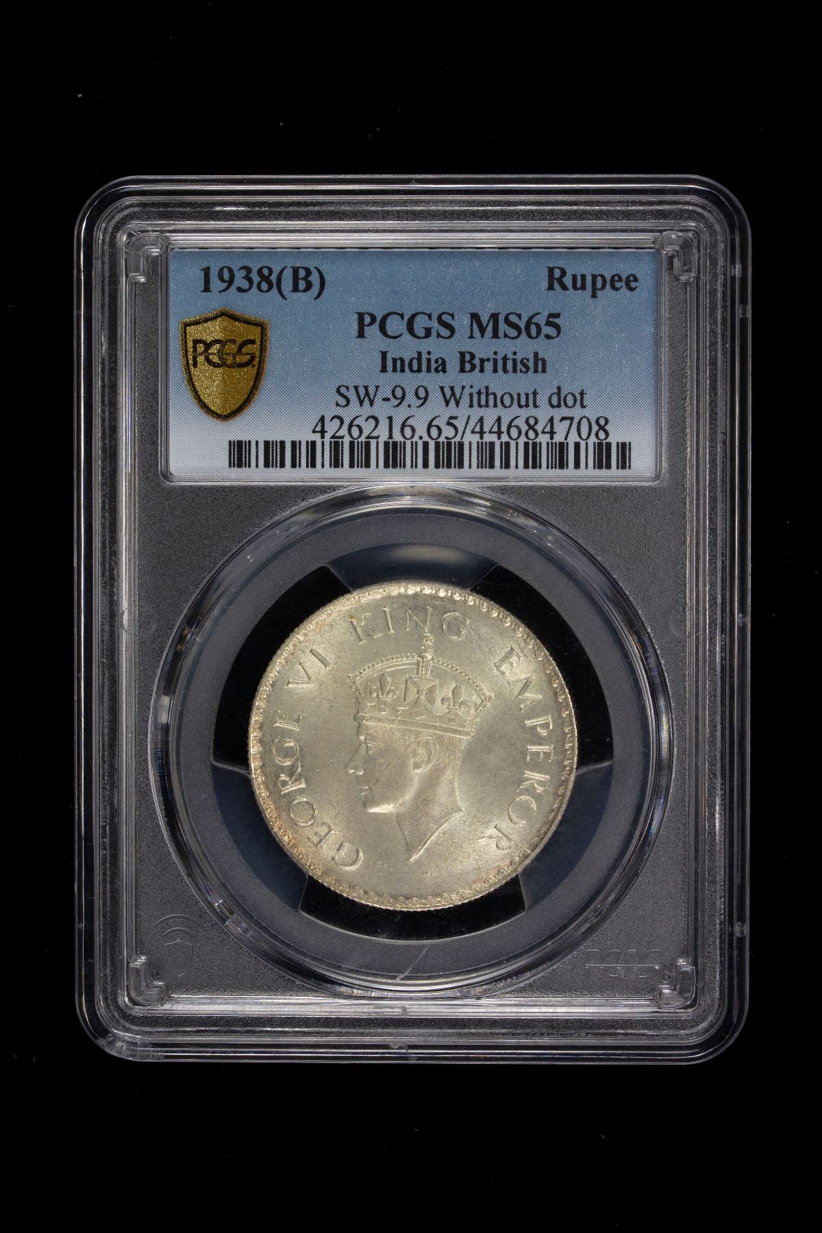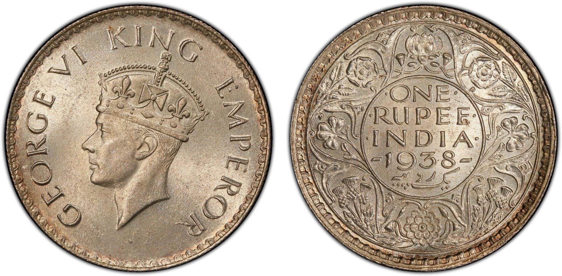 BRITISH INDIA: George VI, 1936-1947, AR rupee, 1938(b), PCGS MS65