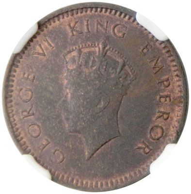 BRITISH INDIA: George VI, 1936-1952, AE ½ pice, 1938(c), KM-528, NGC graded MS62 BR.