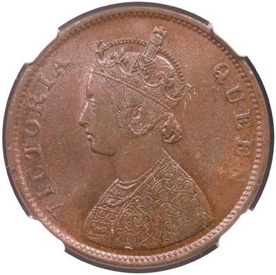 BRITISH INDIA: Victoria, 1837-1901, AE ½ anna, Bombay, 1862, KM-468, diameter about 30.5 mm, NGC graded MS-63 BN, ex. Eck Prud'homme collection.