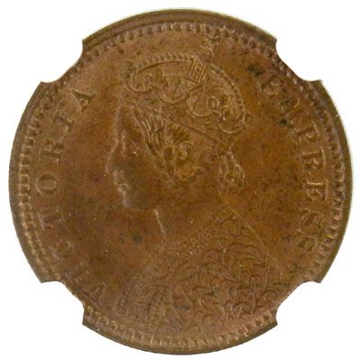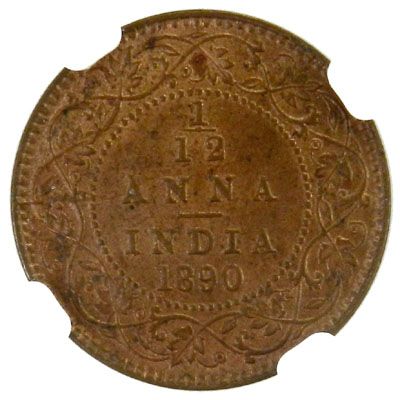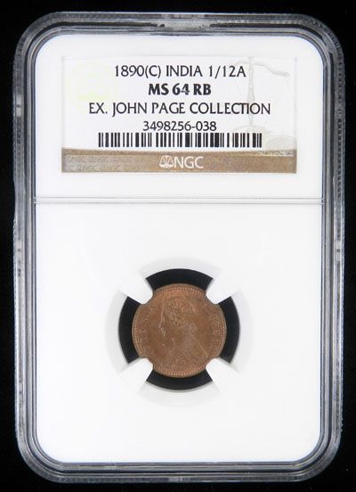 BRITISH INDIA: Victoria, Empress, 1876-1901, AE 1/12 anna, 1890(c), KM-483, Y-16, NGC graded MS64 RB, ex. John Page Collection.