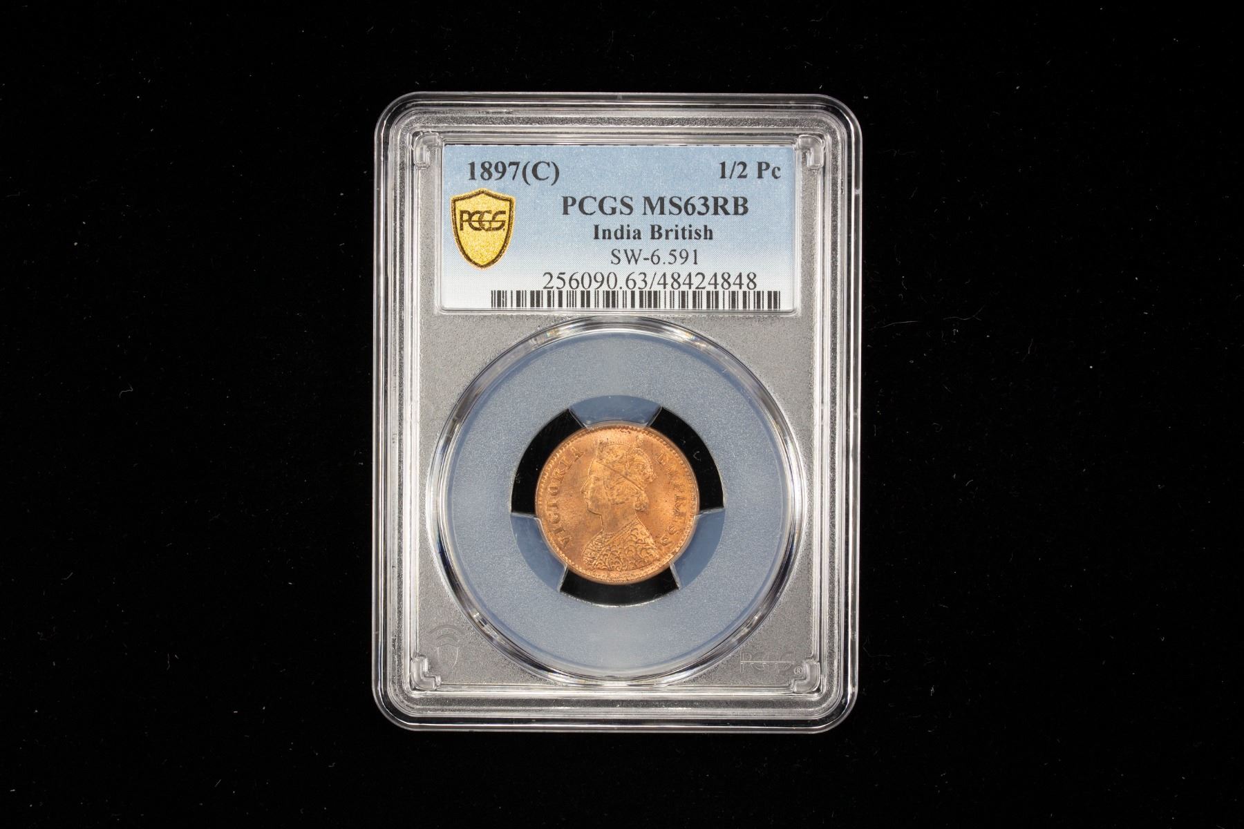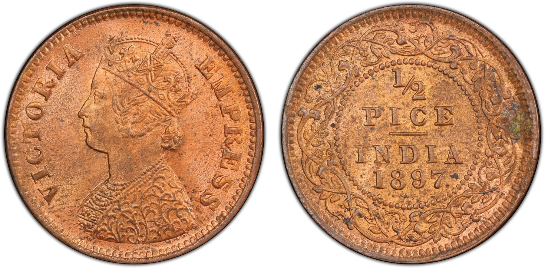 BRITISH INDIA: Victoria, Empress, 1876-1901, AE 1/2 pice, 1897(c), PCGS MS63 RB
