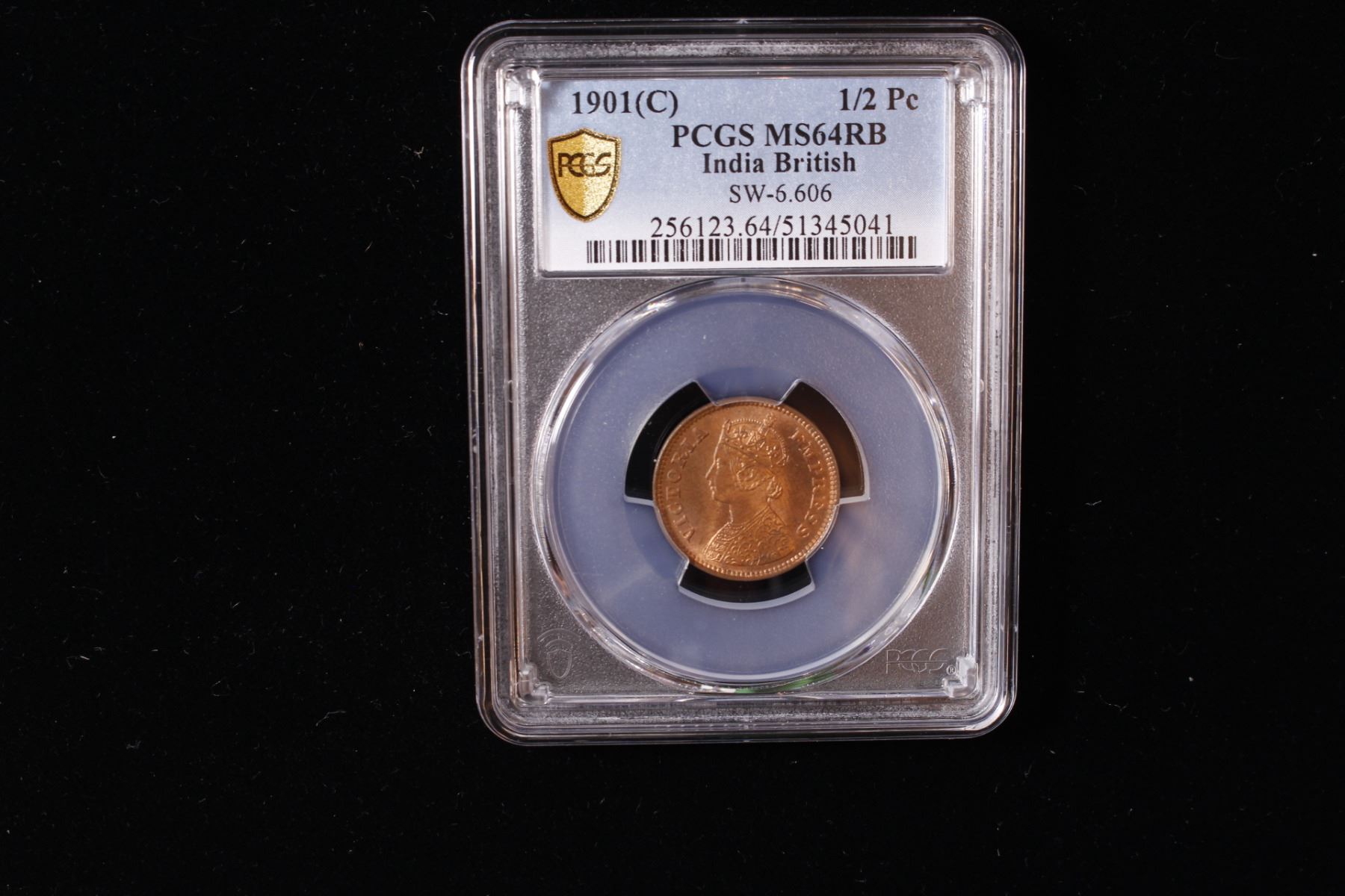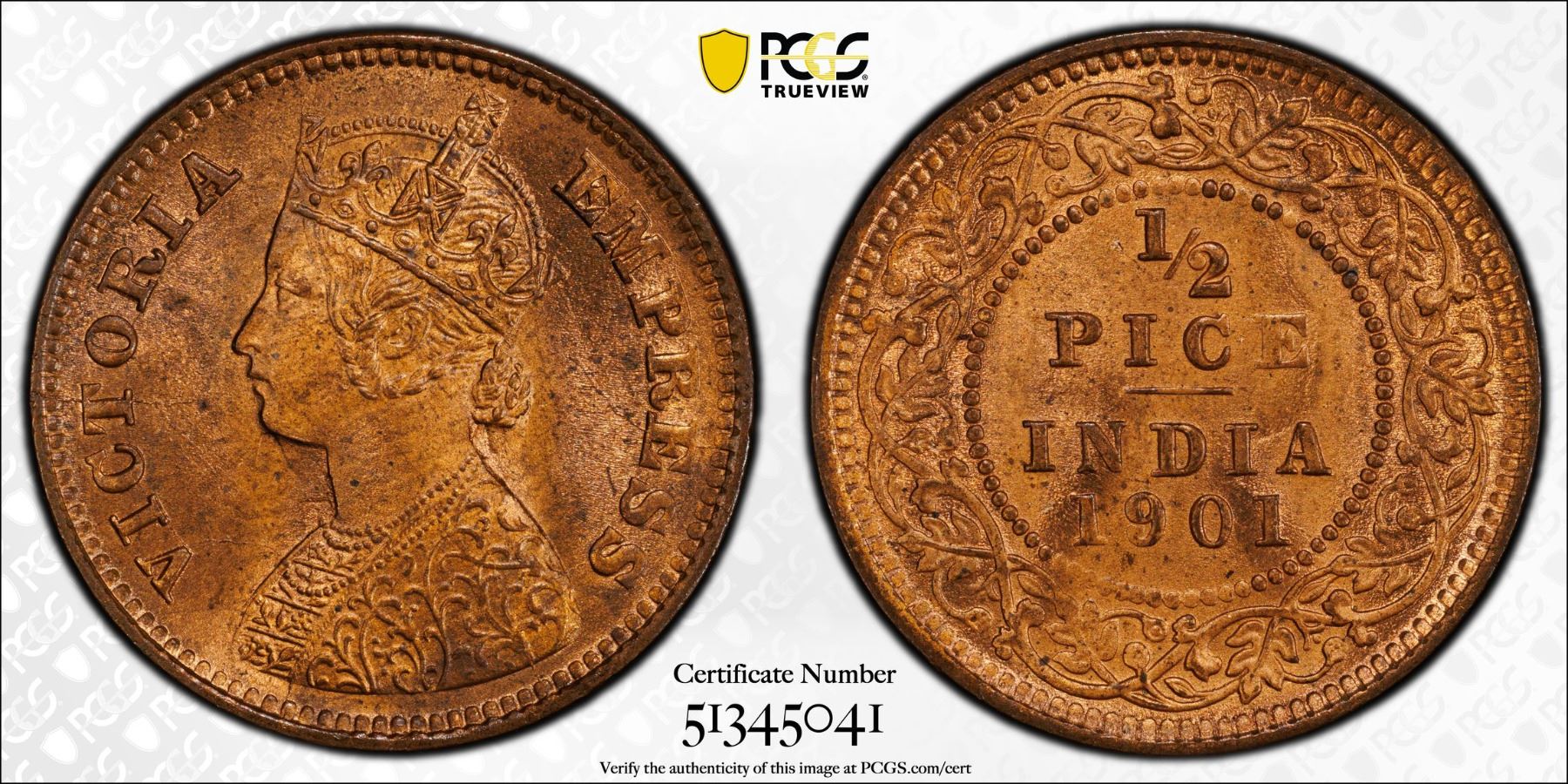 BRITISH INDIA: Victoria, Empress, 1876-1901, AE 1/2 pice, 1901(c), PCGS MS64 RB