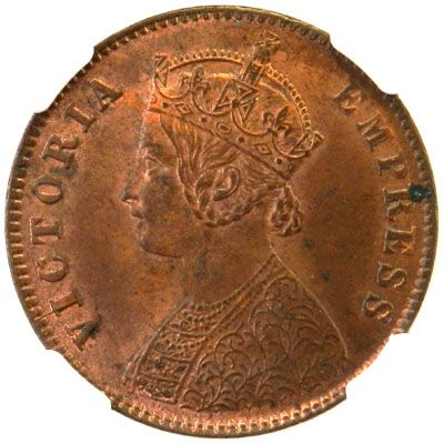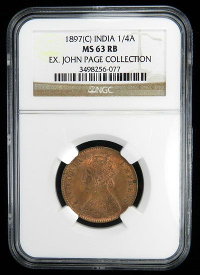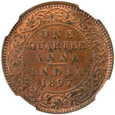 BRITISH INDIA: Victoria, Empress, 1876-1901, AE ¼ anna, 1897(c), KM-486, Y-18, NGC graded MS63 RB, ex. John Page Collection.