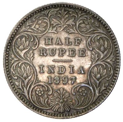 BRITISH INDIA: Victoria, Empress, 1876-1901, AR ½ rupee, 1897-C, KM-472, Pridmore-280, A/I, nicely toned EF, ex. John Page Collection.
