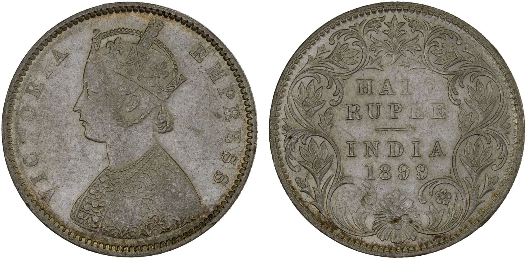 BRITISH INDIA: Victoria, Empress, 1876-1901, AR 1/2 rupee, 1899-B, AU