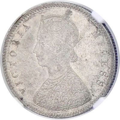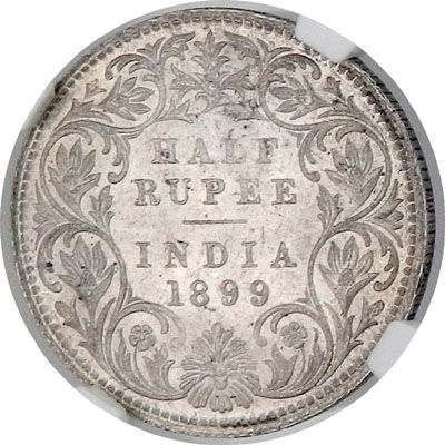 BRITISH INDIA: Victoria, Empress, 1876-1901, AR ½ rupee, 1899-B, KM-491, inverted B variety, NGC graded MS62.
