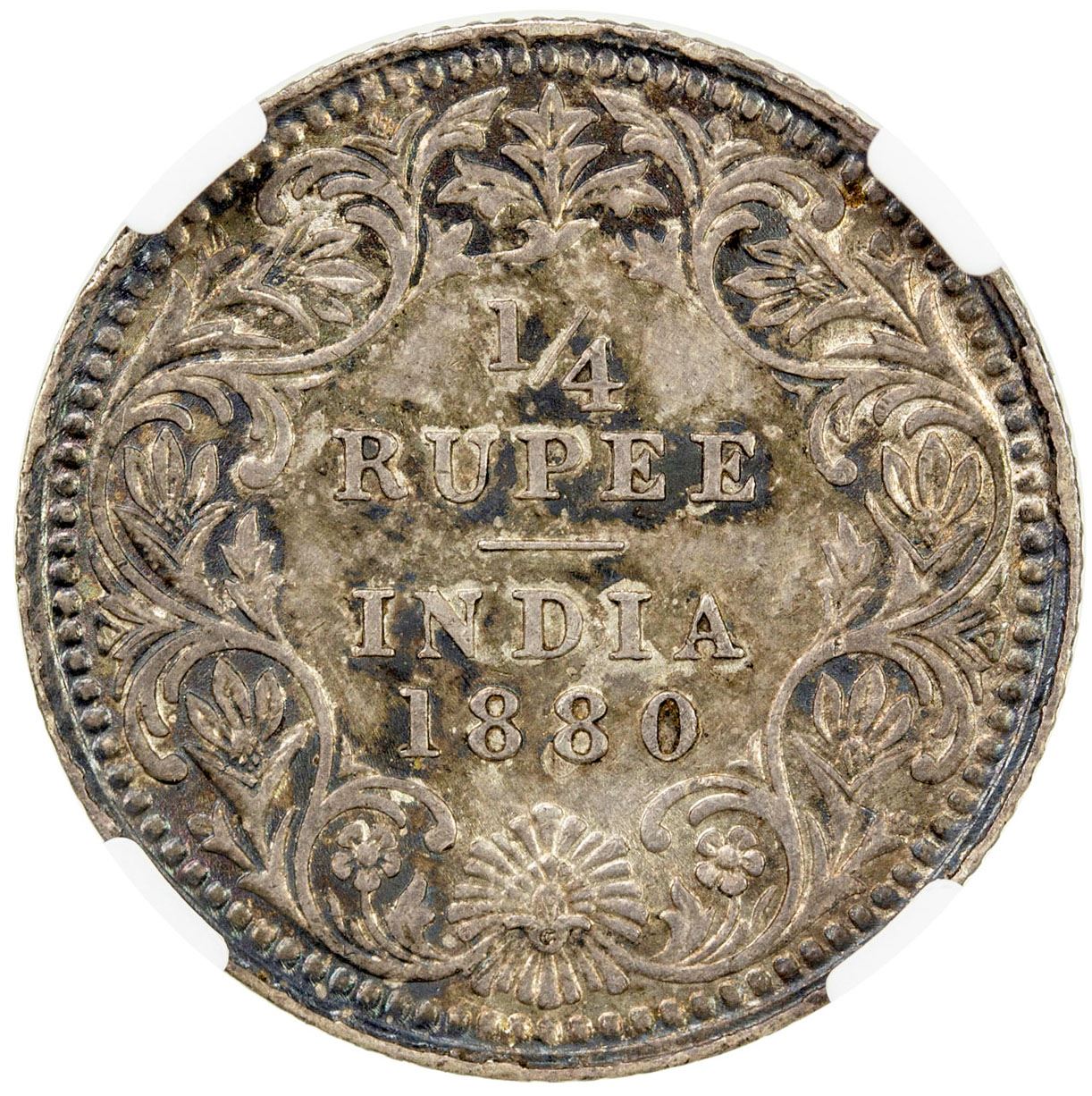 BRITISH INDIA: Victoria, Empress, 1876-1901, AR 1/4 rupee, 1880-C. NGC AU58