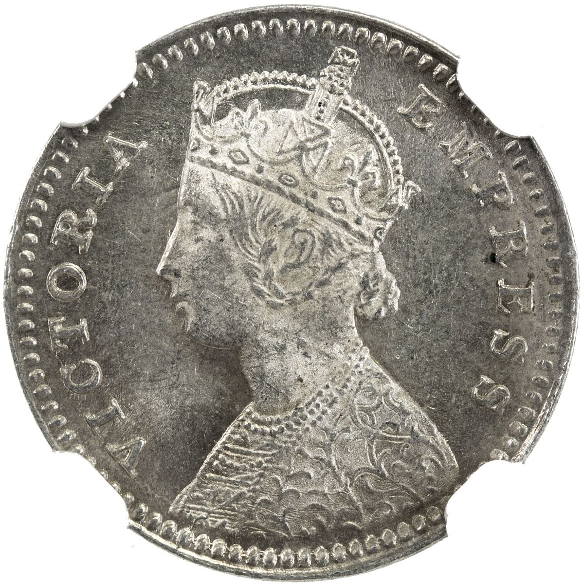 BRITISH INDIA: Victoria, Empress, 1876-1901, AR 2 annas, 1878(c), KM-488, S&W-6.354, type B, II, NGC graded MS63.