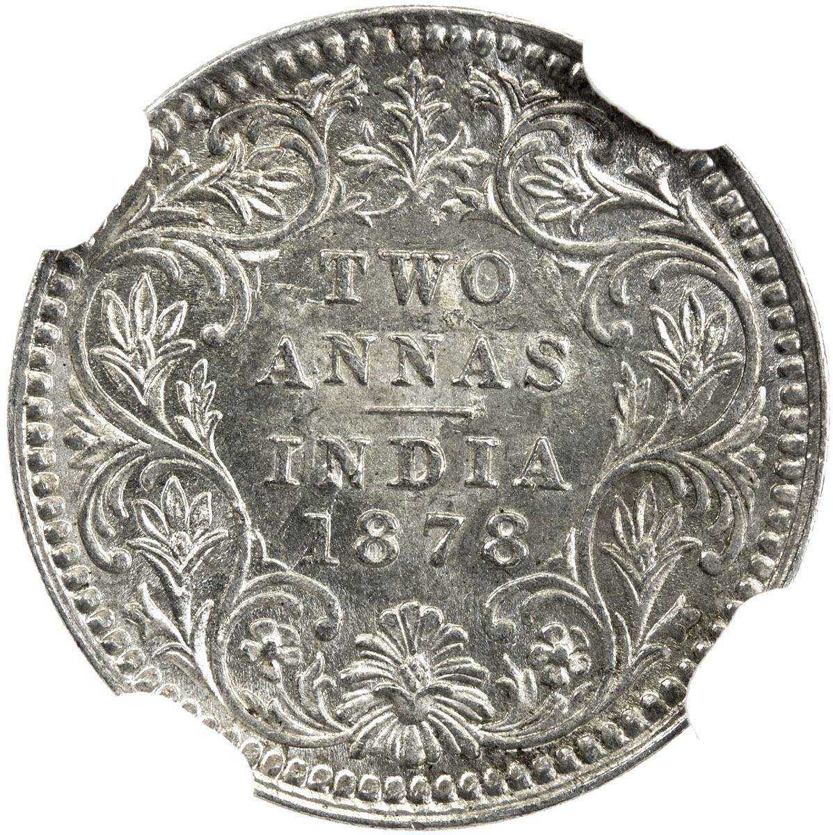BRITISH INDIA: Victoria, Empress, 1876-1901, AR 2 annas, 1878(c). NGC MS63