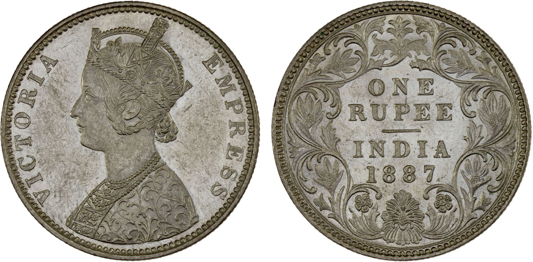 BRITISH INDIA: Victoria, Empress, 1876-1901, AR rupee, 1887-B, Unc
