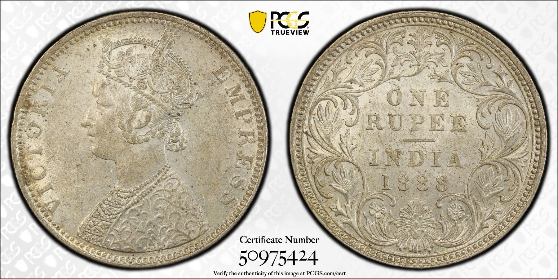 BRITISH INDIA: Victoria, Empress, 1876-1901, AR rupee, 1888-B, PCGS MS62