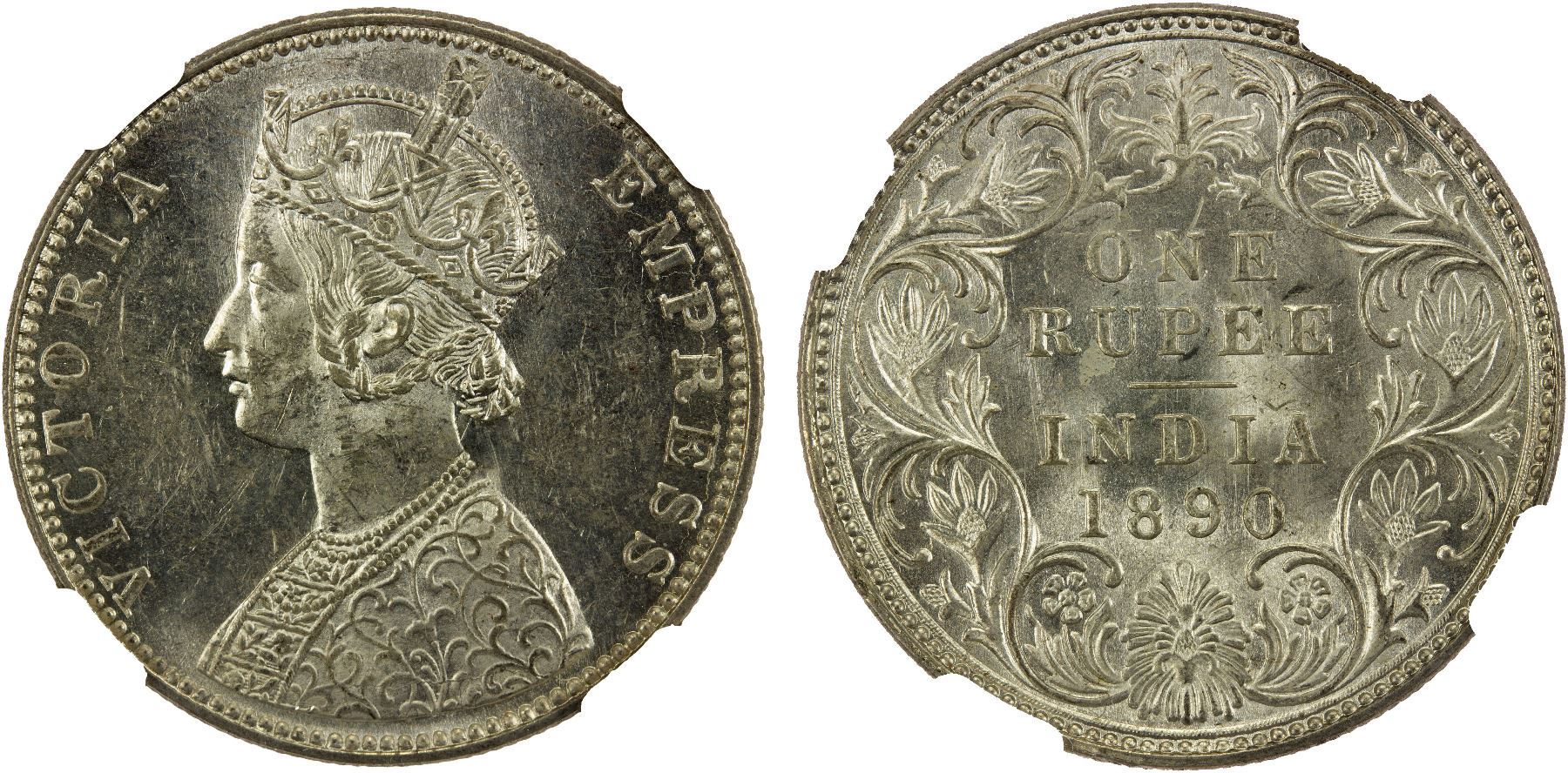 BRITISH INDIA: Victoria, Empress, 1876-1901, AR rupee, 1890-B, NGC MS62
