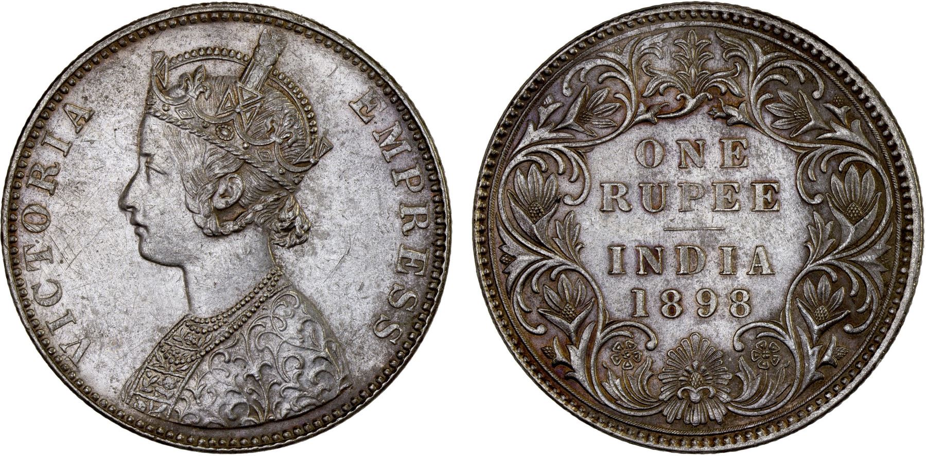 BRITISH INDIA: Victoria, Empress, 1876-1901, AR rupee, 1898-B, Choice XF