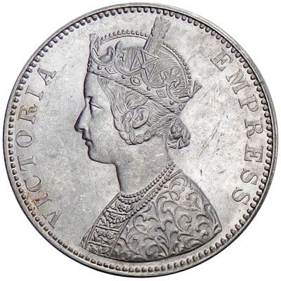 BRITISH INDIA: Victoria, Empress, 1876-1901, AR rupee, 1898-B, KM-492, incuse mintmark, choice Unc.