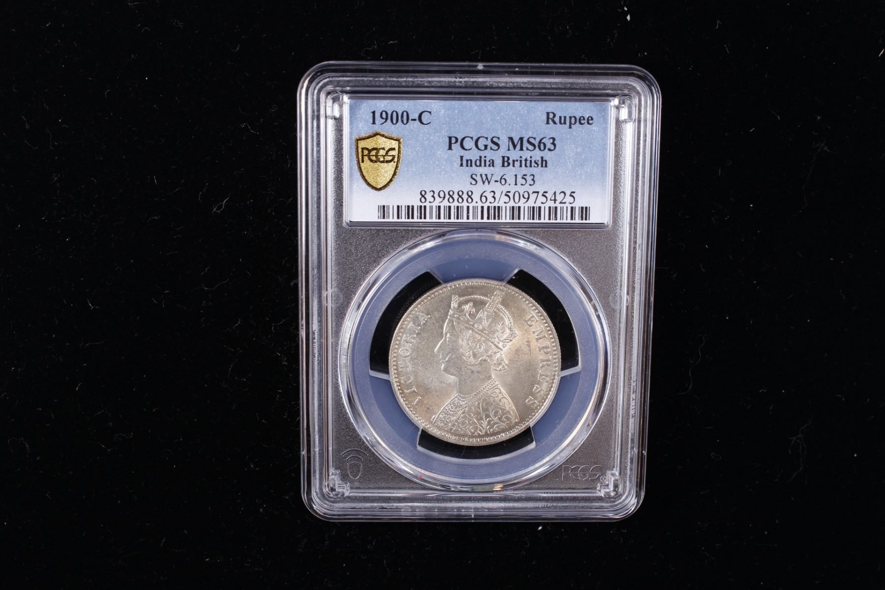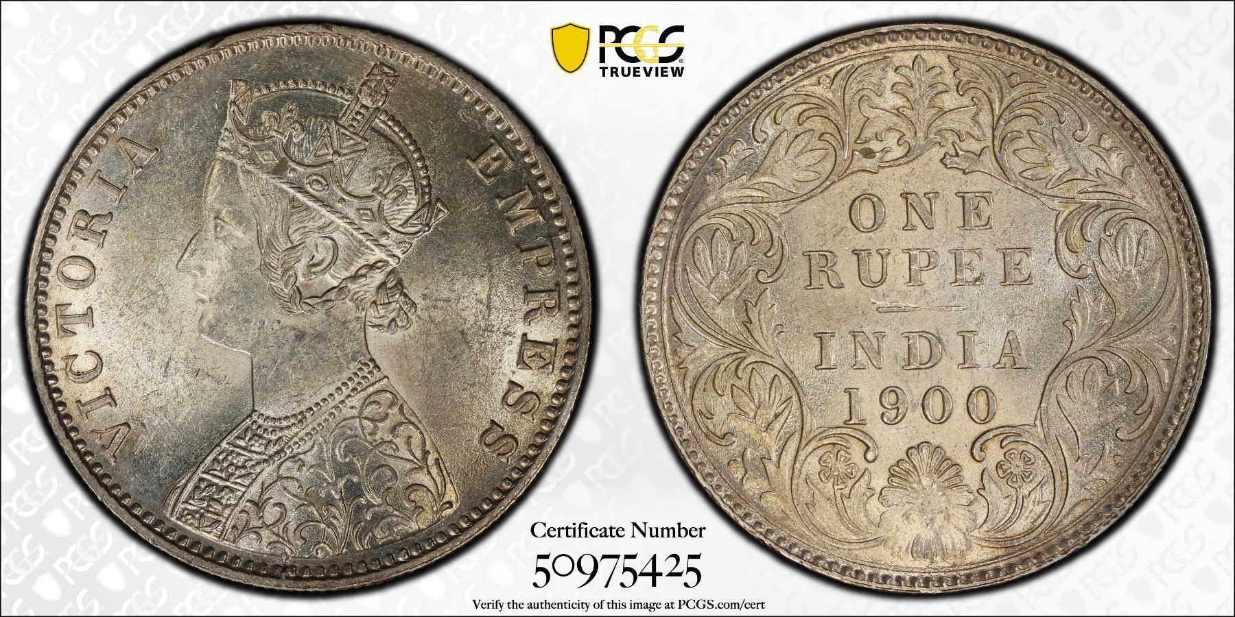 BRITISH INDIA: Victoria, Empress, 1876-1901, AR rupee, 1900-C, PCGS MS63
