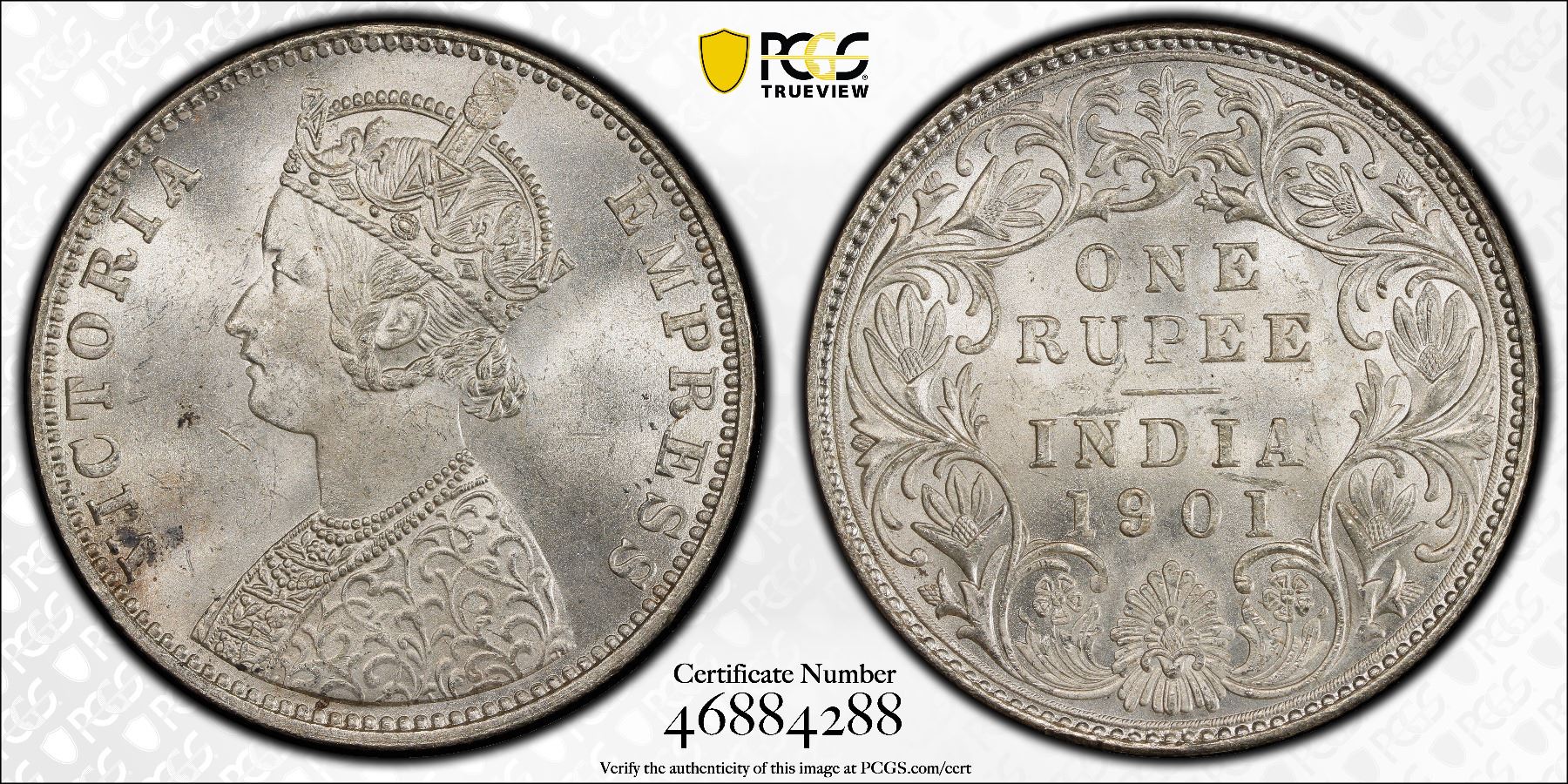 BRITISH INDIA: Victoria, Empress, 1876-1901, AR rupee, 1901-B, PCGS MS63