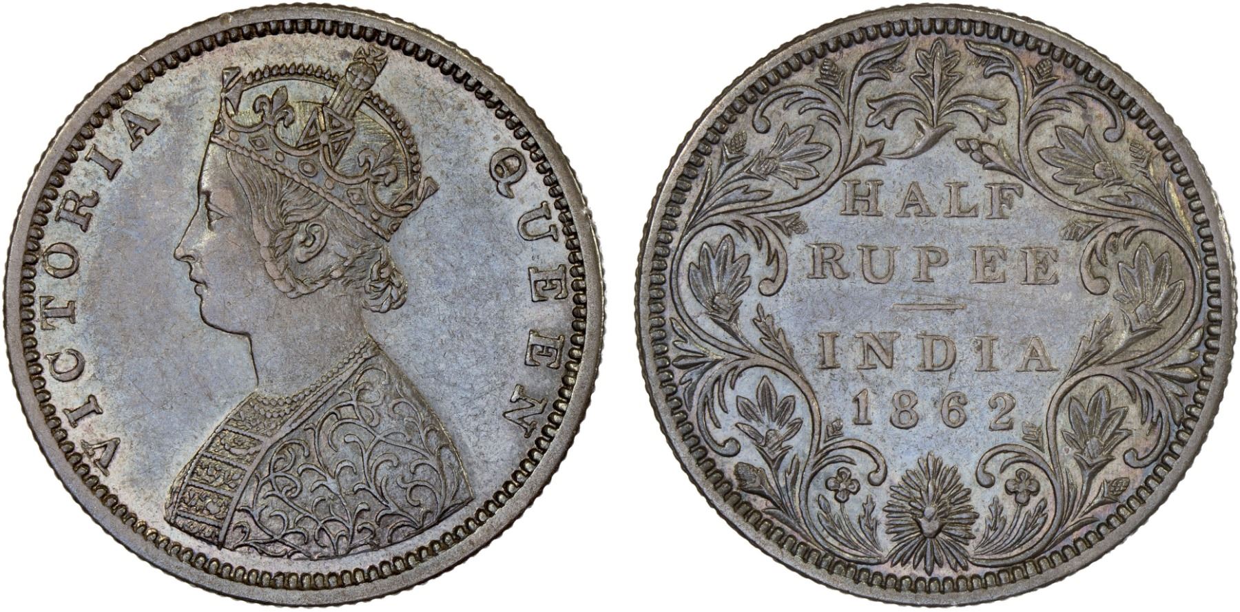 BRITISH INDIA: Victoria, Queen, 1837-1876, AR 1/2 rupee, 1862(b), XF-AU